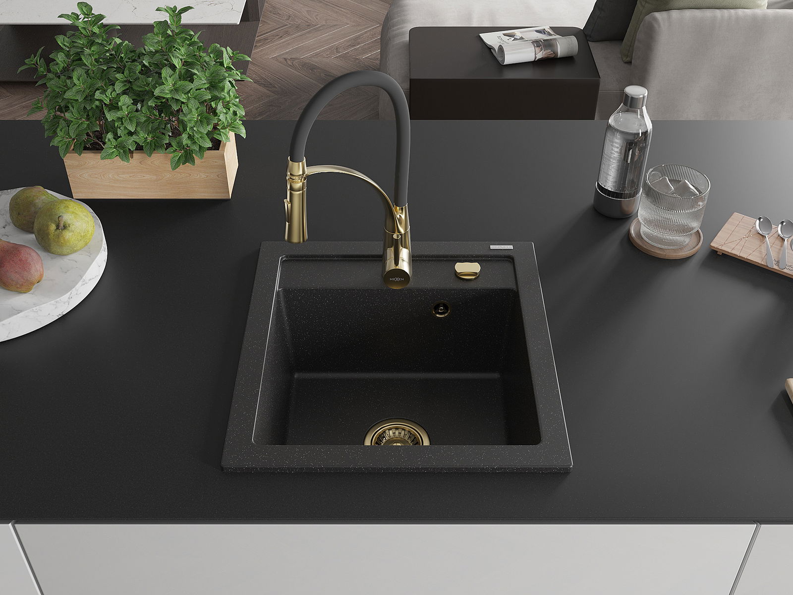 Mexen Vito évier en granit 1 bac avec robinet de cuisine Aster, noir/argent métallique- 6503-73-73450-57-G