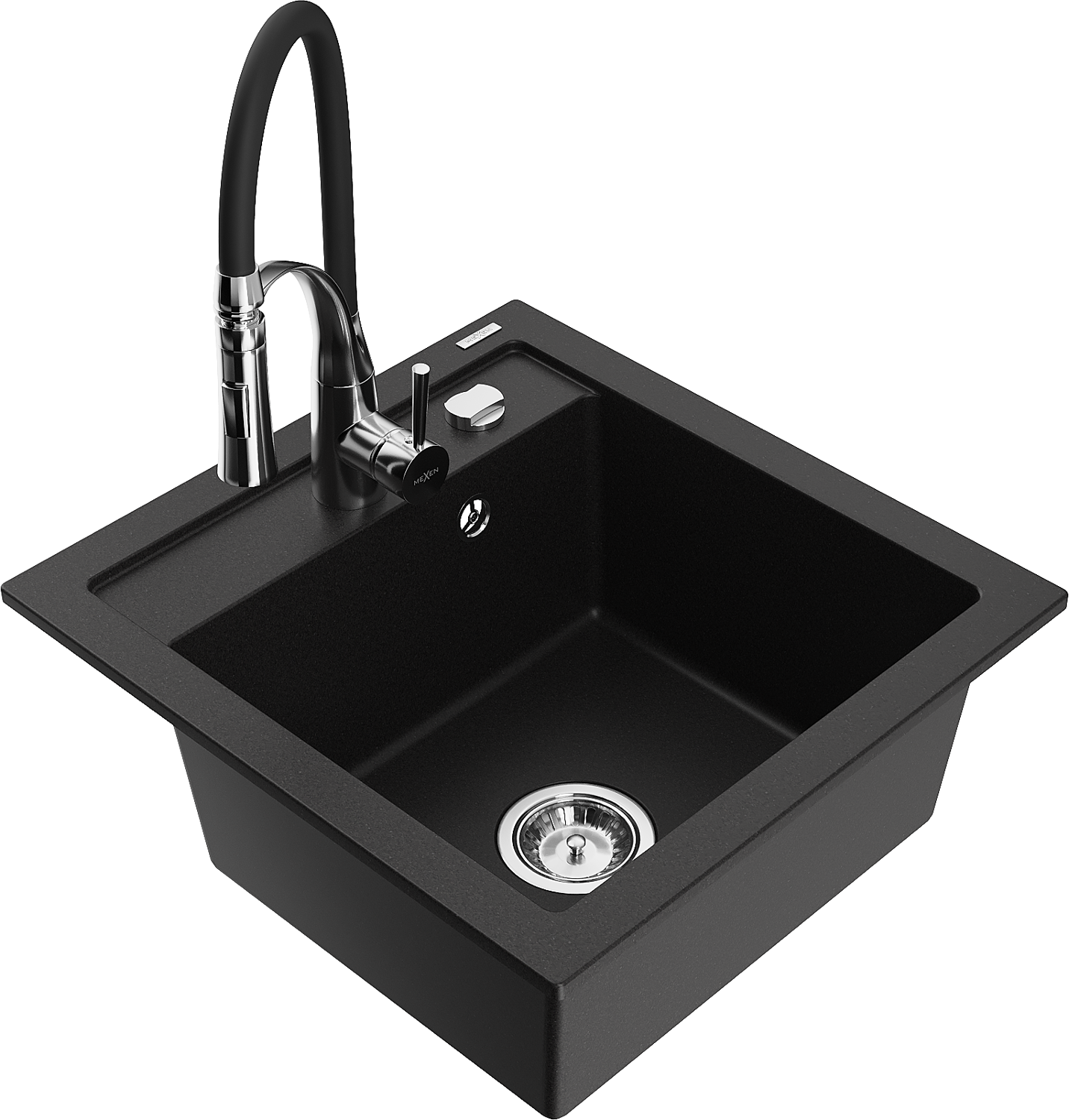 Mexen Vito évier en granit 1 bac avec robinet de cuisine Aster, noir - 6503-77-73450-07