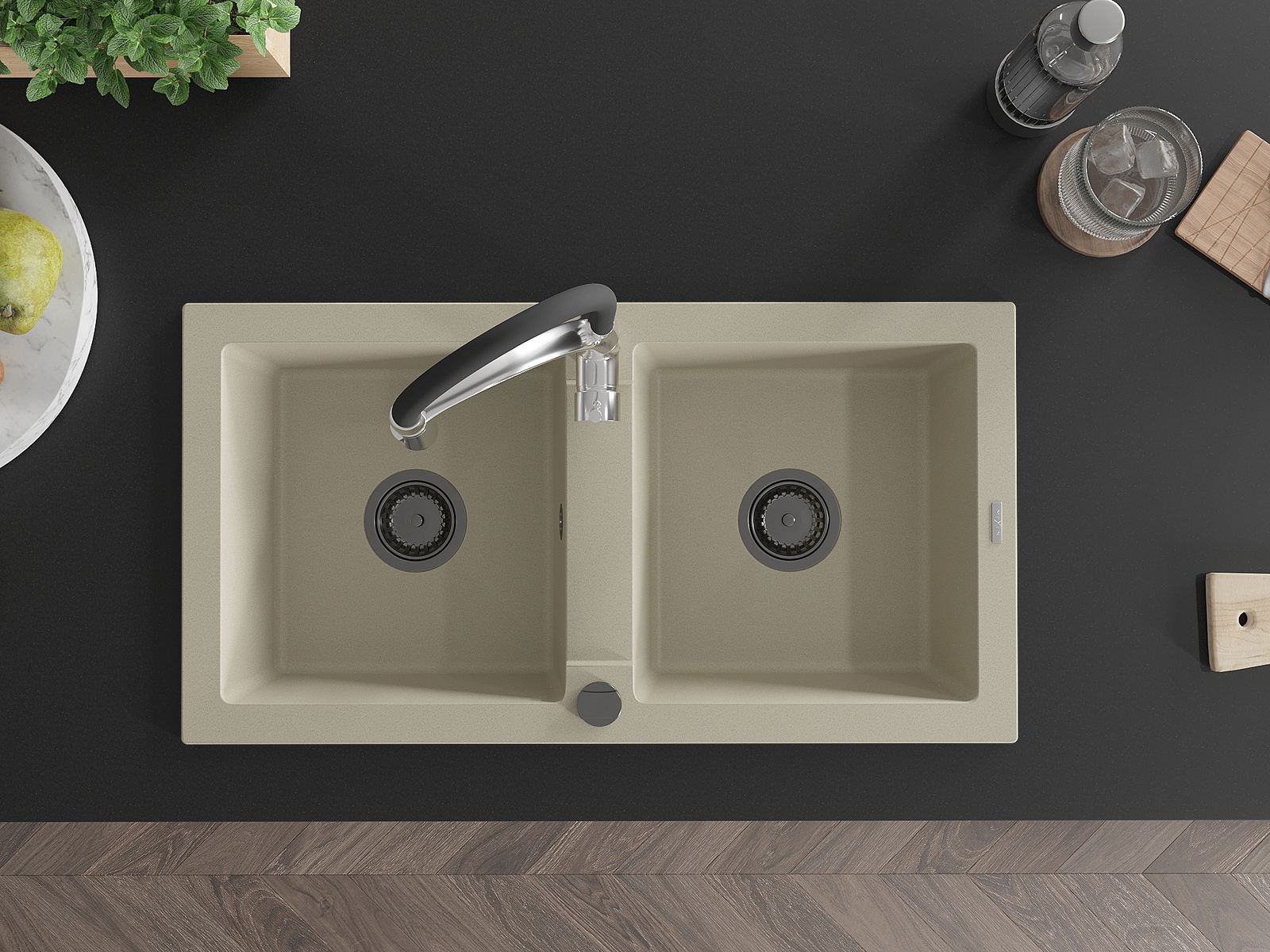 Mexen Mario évier de cuisine en granit à 2 cuves avec robinet de cuisine Aster, beige - 6504-69-73450-07-B