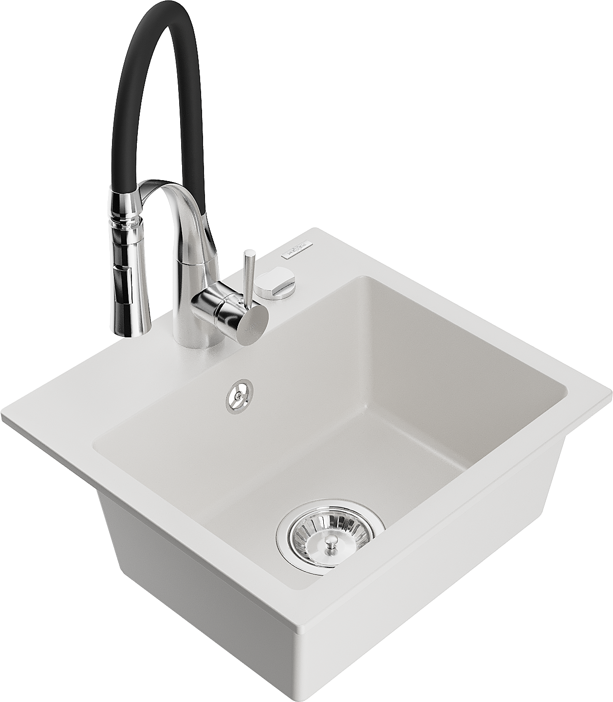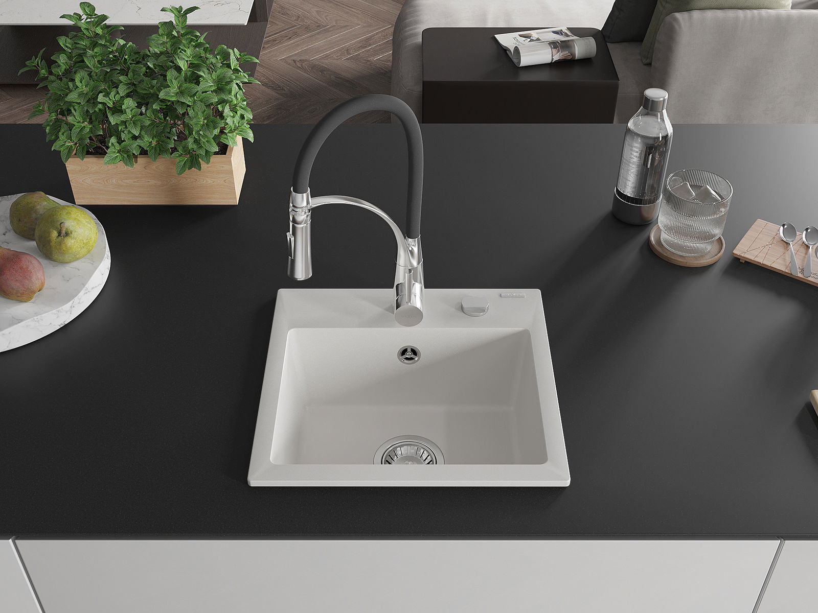 Mexen Milo évier en granit 1 bac avec robinet de cuisine Aster, blanc - 6505-20-73450-07