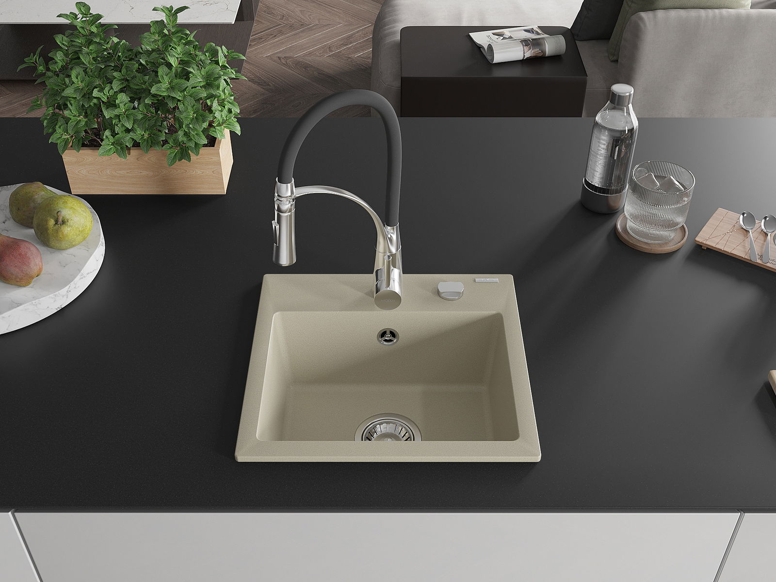 Mexen Milo évier en granit à 1 bac avec robinet de cuisine Aster, beige - 6505-69-73450-07