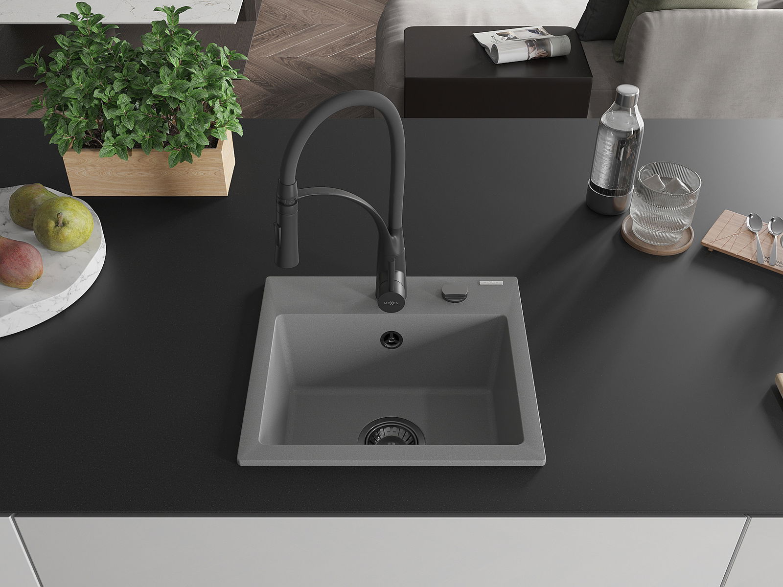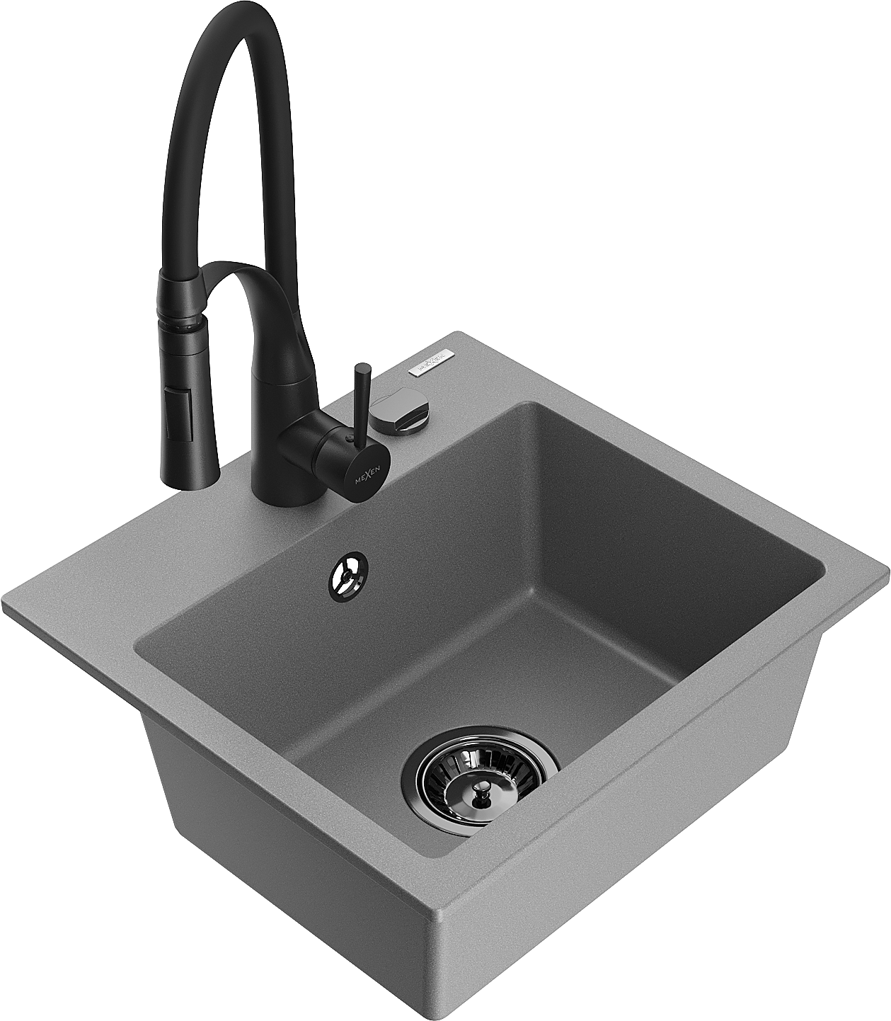 Mexen Milo évier de cuisine en granit 1 bac avec robinet de cuisine Aster, gris - 6505-71-73450-70-B