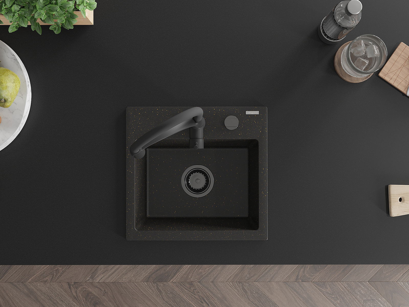 L'évier a un trou sous-meulé de 35 mm de diamètre à percer soi-même. Il peut être utilisé, entre autres, pour installer un distributeur de liquide, ce qui éliminera la présence de bouteilles en plastique dans la cuisine et lui donnera une finition élégante.