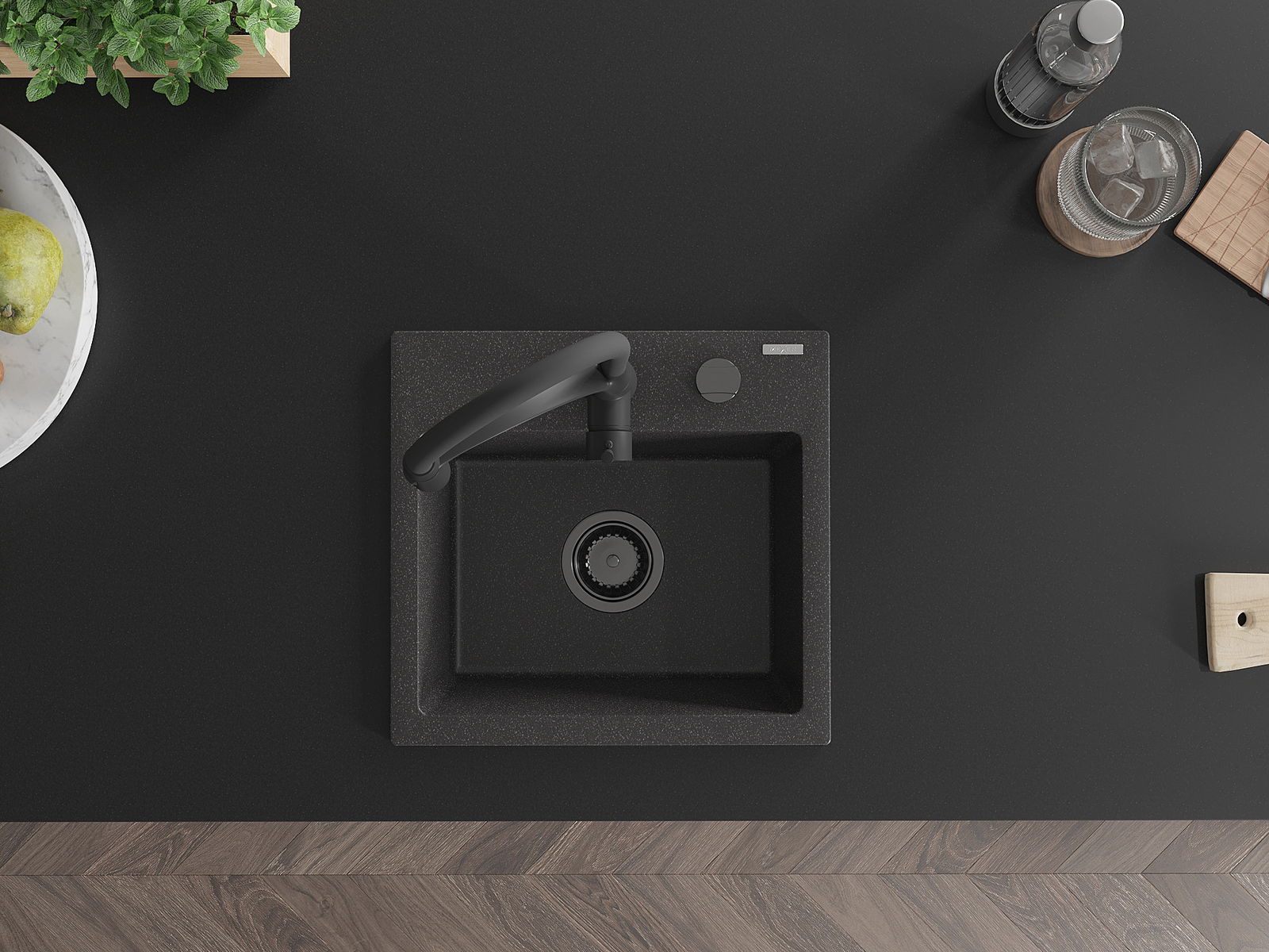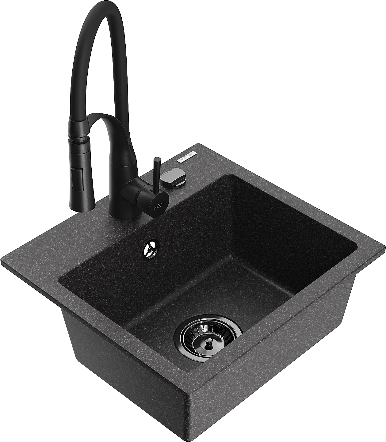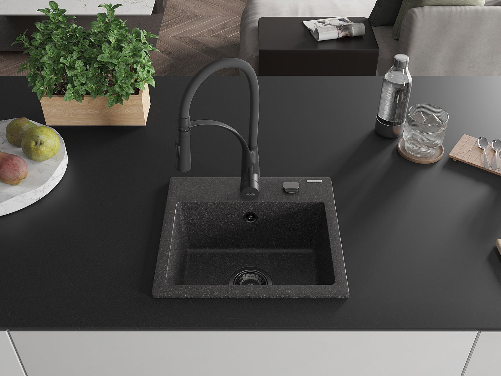 Mexen Milo évier en granit 1 bac avec robinet de cuisine Aster, noir moucheté - 6505-76-73450-70-B