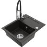 Mexen Enzo évier en granit 1 bac avec égouttoir et mitigeur de cuisine Aster, noir - 6506-77-73450-07