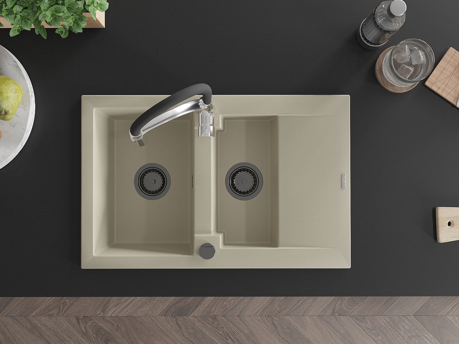 Mexen Gaspar évier en granit 1,5 bac avec égouttoir et robinet de cuisine Aster, beige - 6507-69-73450-07-B