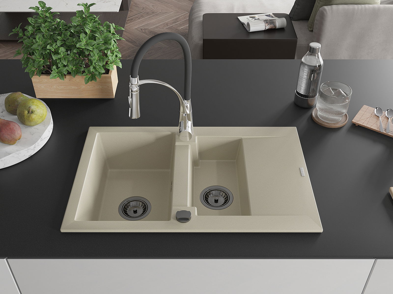 L'évier est fabriqué en granit de haute qualité. Il constitue un complément élégant et surtout pratique pour toute cuisine, quel que soit son style. La qualité et la durabilité du granit garantissent de nombreuses années d'utilisation.