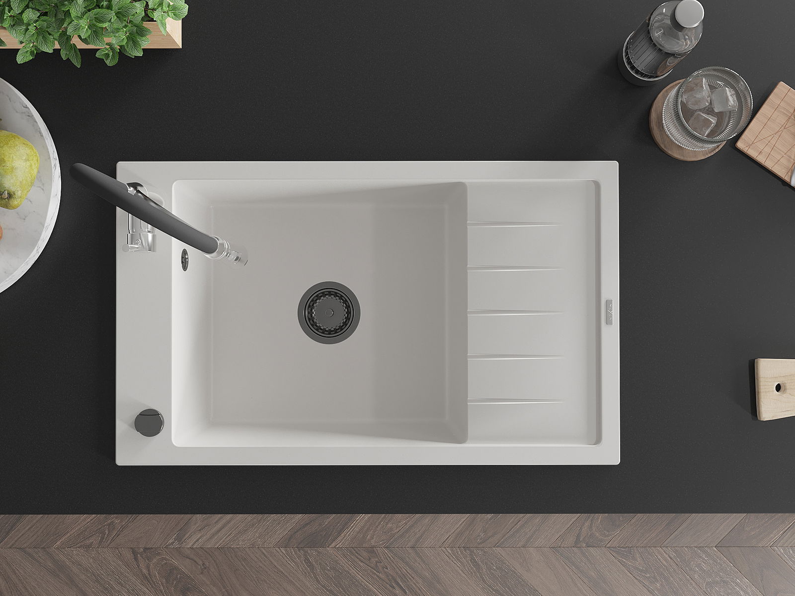 La surface de l'évier est très bien trempée et se distingue par une résistance exceptionnelle aux dommages mécaniques et aux rayures. Ce matériau durable vous permettra de profiter de son bel aspect pendant de nombreuses années.