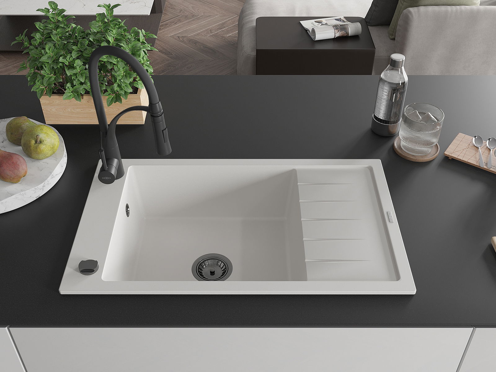 L'évier est fabriqué en granit de haute qualité. Il constitue un complément élégant et surtout pratique pour toute cuisine, quel que soit son style. La qualité et la durabilité du granit garantissent de nombreuses années d'utilisation.