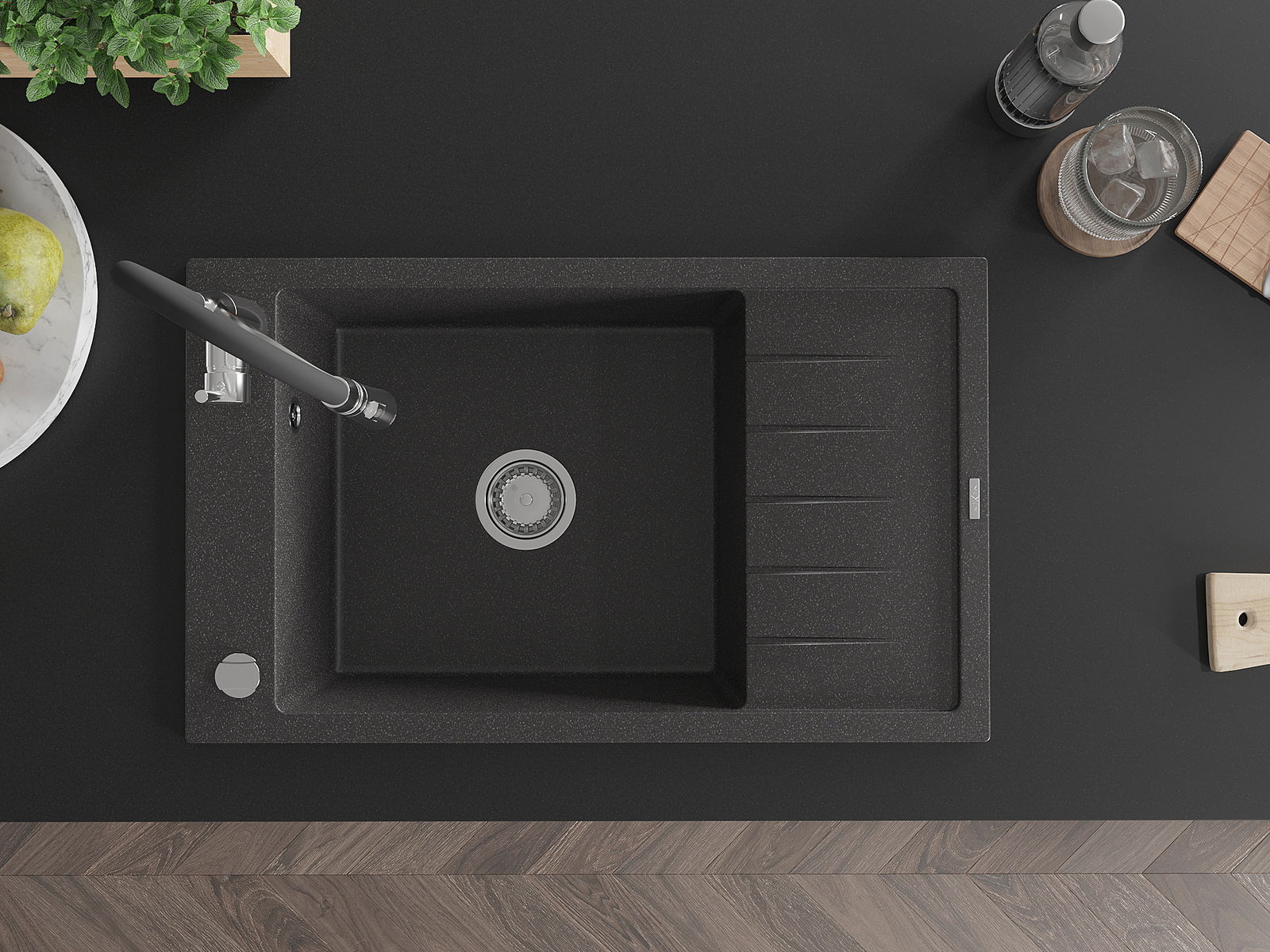 L'évier est fabriqué en granit de haute qualité. Il constitue un complément élégant et surtout pratique pour toute cuisine, quel que soit son style. La qualité et la durabilité du granit garantissent de nombreuses années d'utilisation.