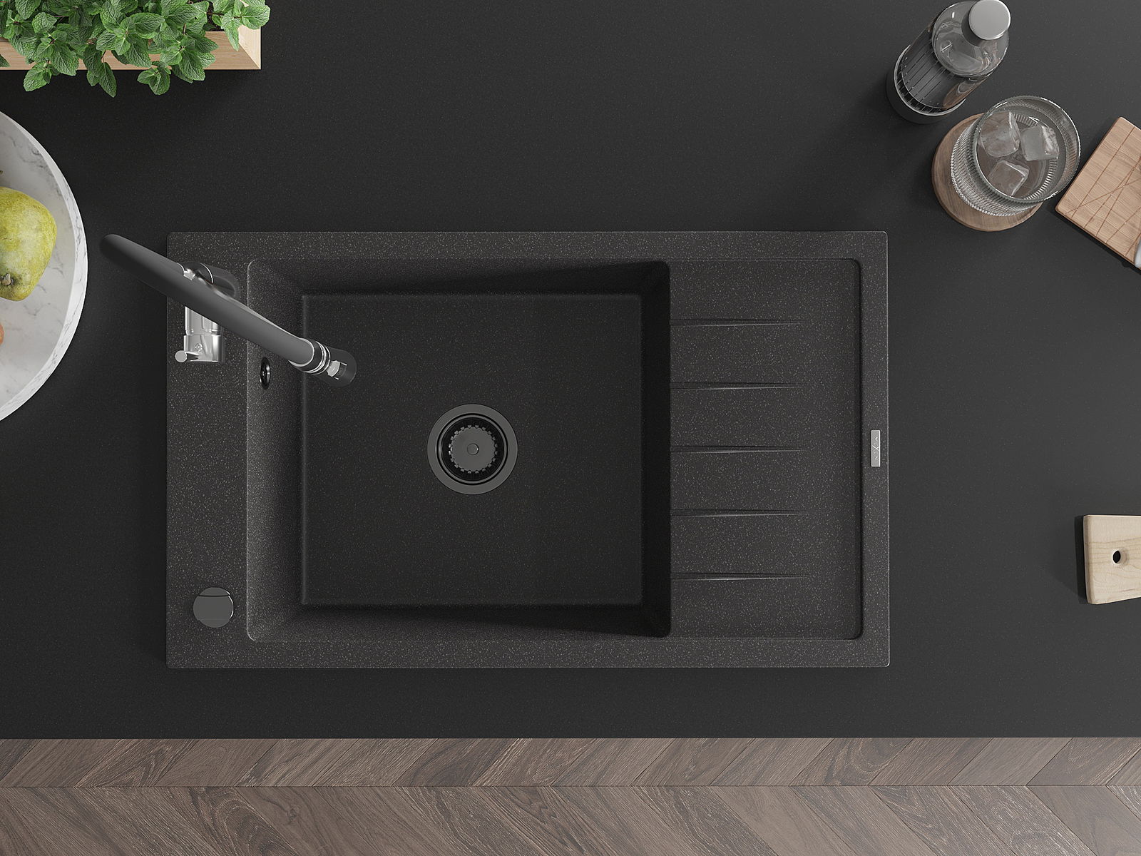 L'évier est fabriqué en granit de haute qualité. Il constitue un complément élégant et surtout pratique pour toute cuisine, quel que soit son style. La qualité et la durabilité du granit garantissent de nombreuses années d'utilisation.