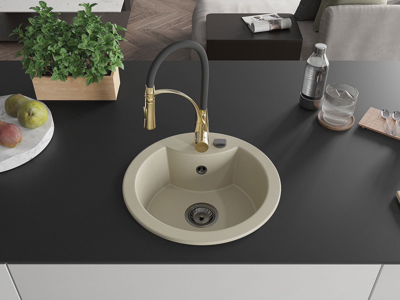 L'évier est fabriqué en granit de haute qualité. Il constitue un complément élégant et surtout pratique pour toute cuisine, quel que soit son style. La qualité et la durabilité du granit garantissent de nombreuses années d'utilisation.