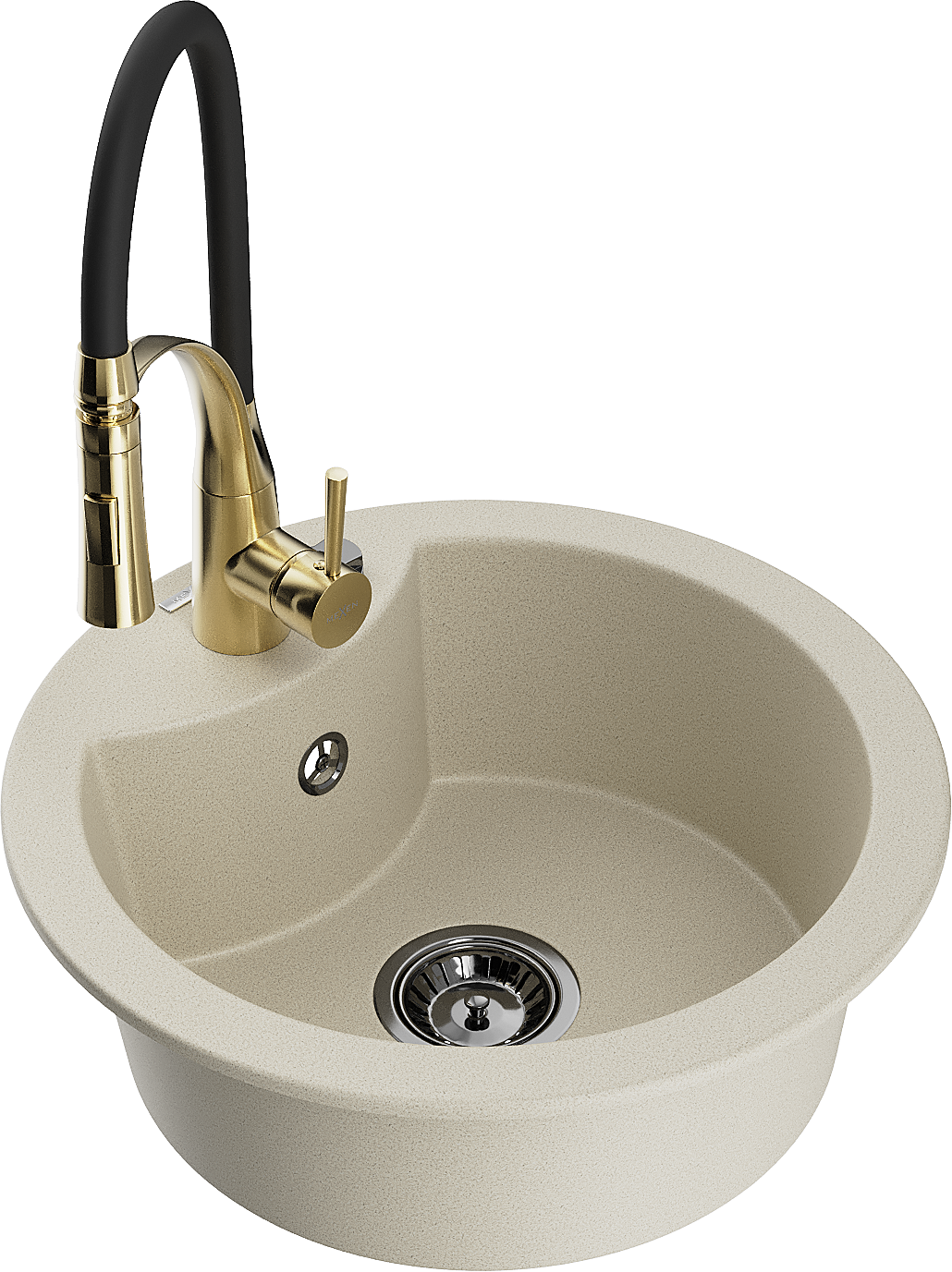 Mexen Diego évier en granit à 1 bac avec robinet de cuisine Aster, beige - 6512-69-73450-57-B