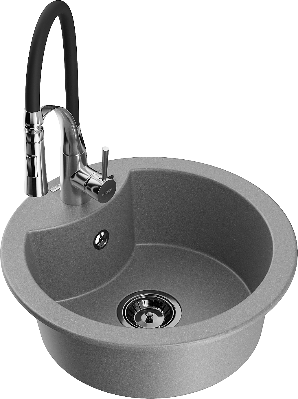 Mexen Diego évier en granit 1 bac avec robinet de cuisine Aster, gris - 6512-71-73450-07-B