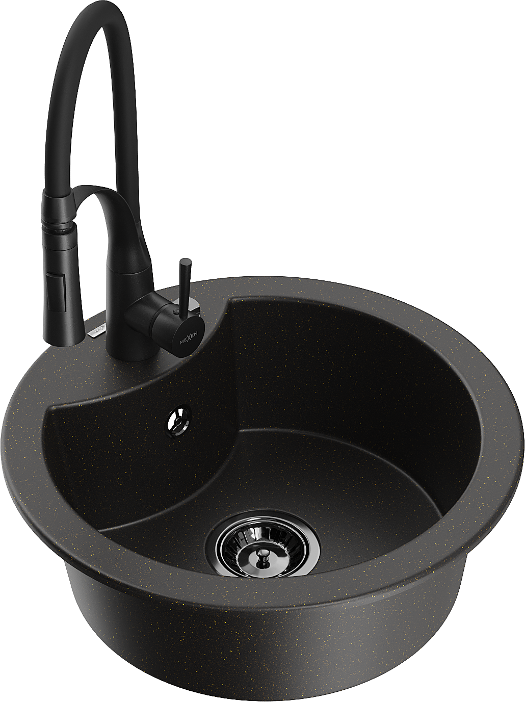 Mexen Diego évier granitique 1 bac avec robinet de cuisine Aster, noir/or métallique - 6512-75-73450-70-B