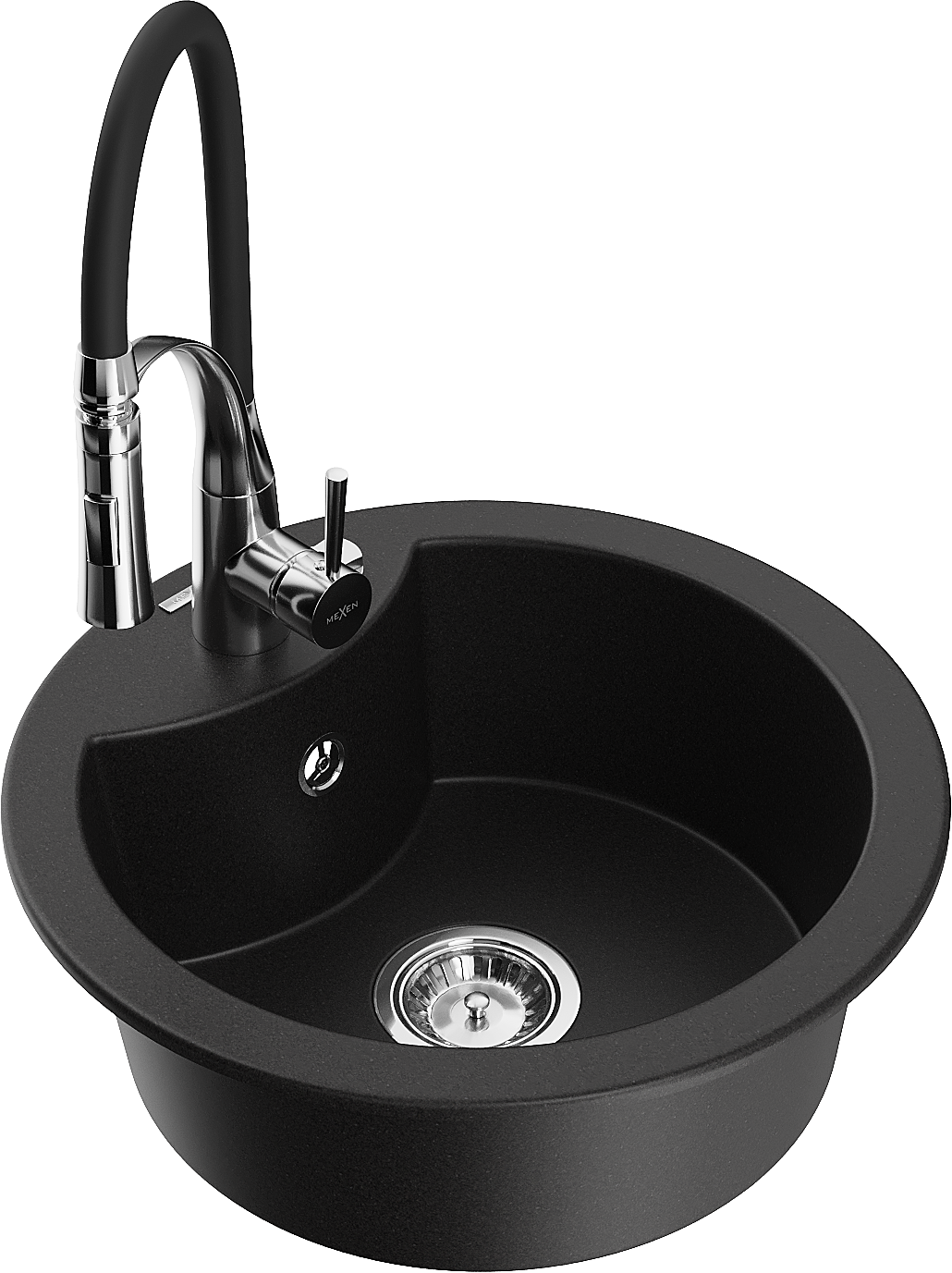 Mexen Diego évier en granit 1 bac avec robinet de cuisine Aster, noir - 6512-77-73450-07