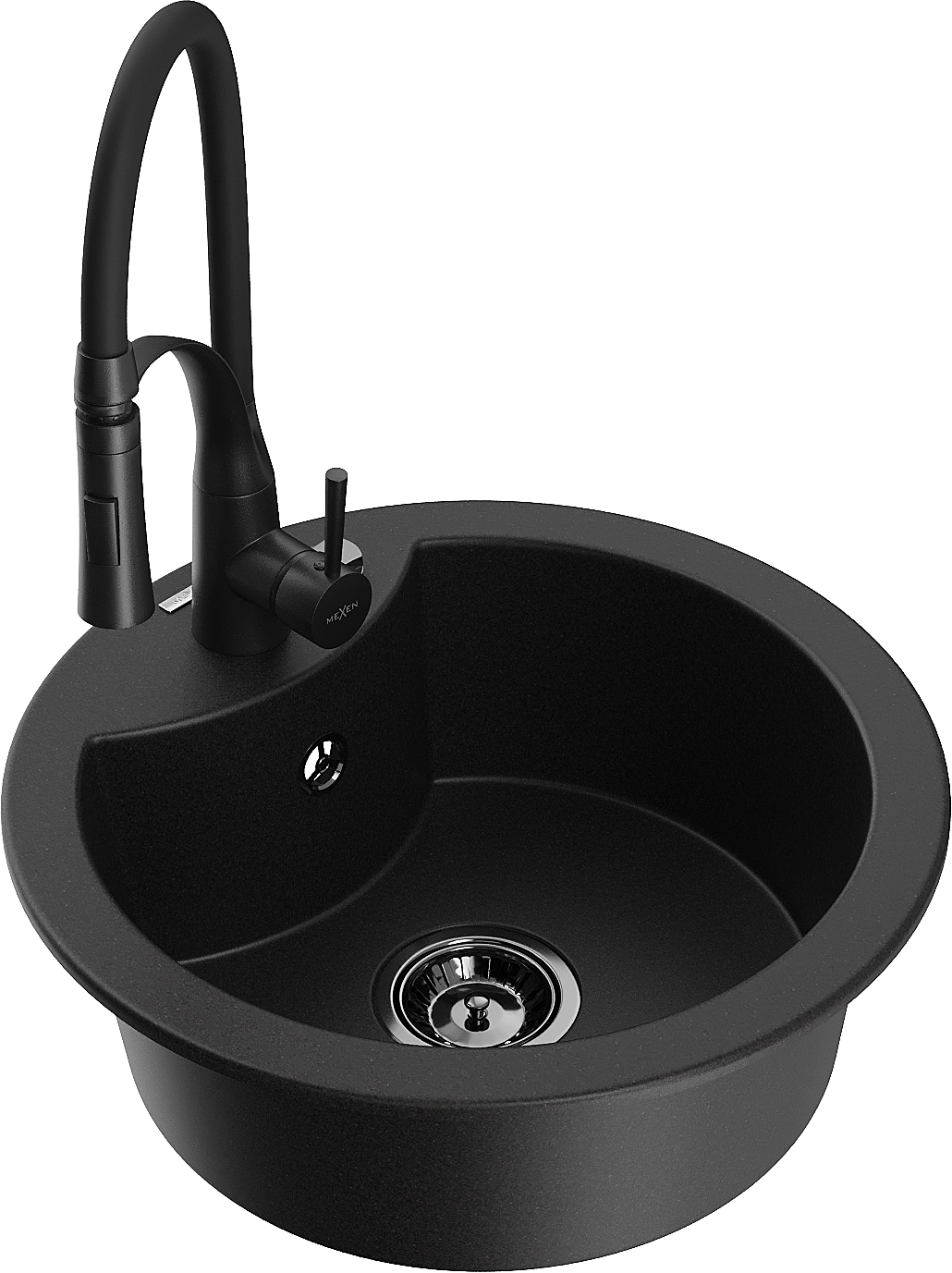 Mexen Diego évier de cuisine en granit 1 bac avec robinet Aster, noir - 6512-77-73450-70-B