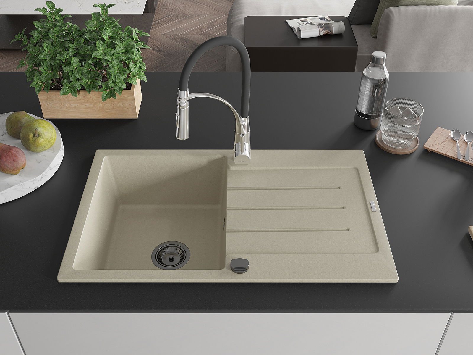 L'évier est fabriqué en granit de haute qualité. Il constitue un complément élégant et surtout pratique pour toute cuisine, quel que soit son style. La qualité et la durabilité du granit garantissent de nombreuses années d'utilisation.