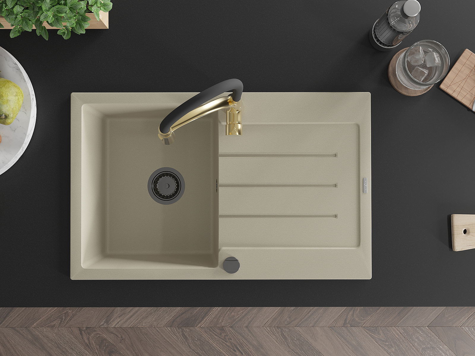 L'évier est fabriqué en granit de haute qualité. Il constitue un complément élégant et surtout pratique pour toute cuisine, quel que soit son style. La qualité et la durabilité du granit garantissent de nombreuses années d'utilisation.
