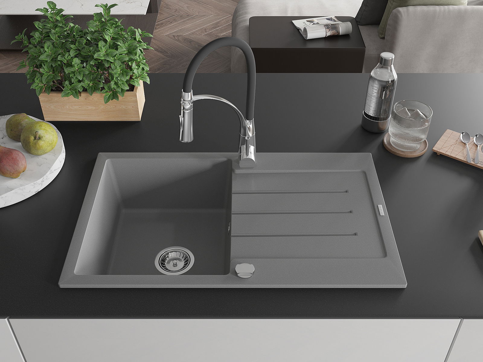 L'évier est fabriqué en granit de haute qualité. Il constitue un complément élégant et surtout pratique pour toute cuisine, quel que soit son style. La qualité et la durabilité du granit garantissent de nombreuses années d'utilisation.