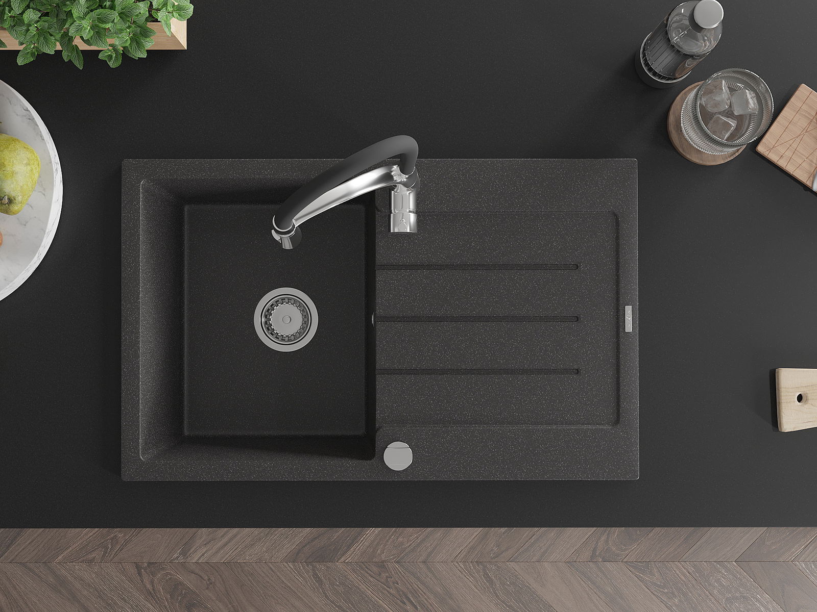 L'évier est fabriqué en granit de haute qualité. Il constitue un complément élégant et surtout pratique pour toute cuisine, quel que soit son style. La qualité et la durabilité du granit garantissent de nombreuses années d'utilisation.