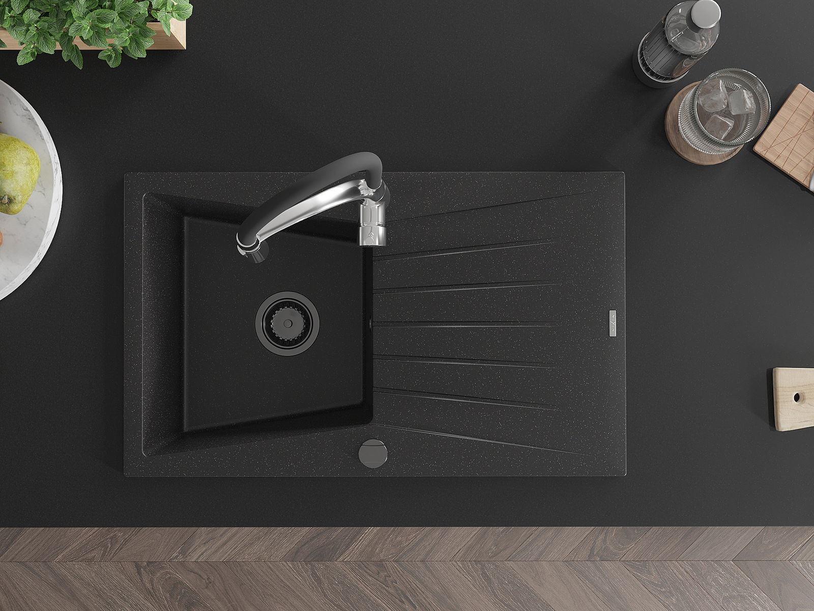 La surface de l'évier est très bien trempée et se distingue par une résistance exceptionnelle aux dommages mécaniques et aux rayures. Ce matériau durable vous permettra de profiter de son bel aspect pendant de nombreuses années.