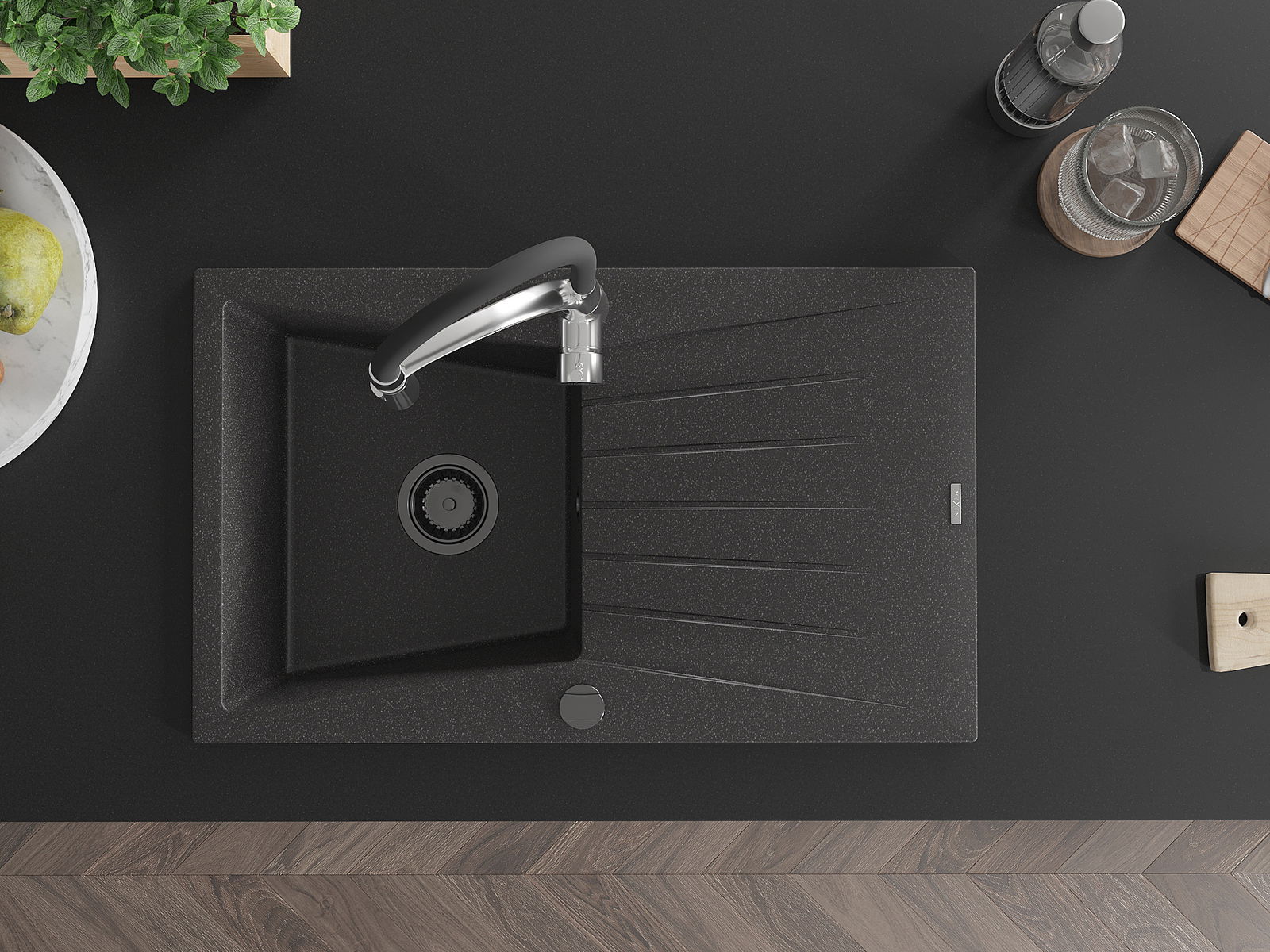 L'évier est fabriqué en granit de haute qualité. Il constitue un complément élégant et surtout pratique pour toute cuisine, quel que soit son style. La qualité et la durabilité du granit garantissent de nombreuses années d'utilisation.