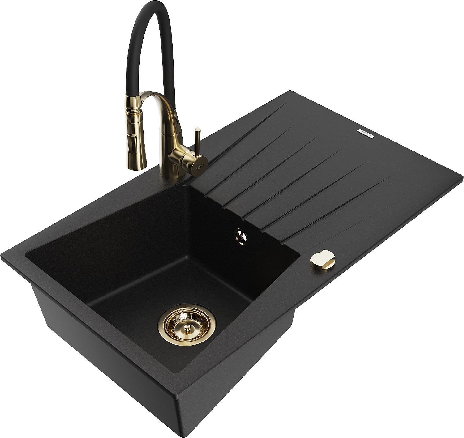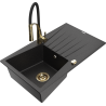 Mexen Cesar évier en granit à 1 bac avec égouttoir et robinet de cuisine Aster, noir - 6514-77-73450-57-G