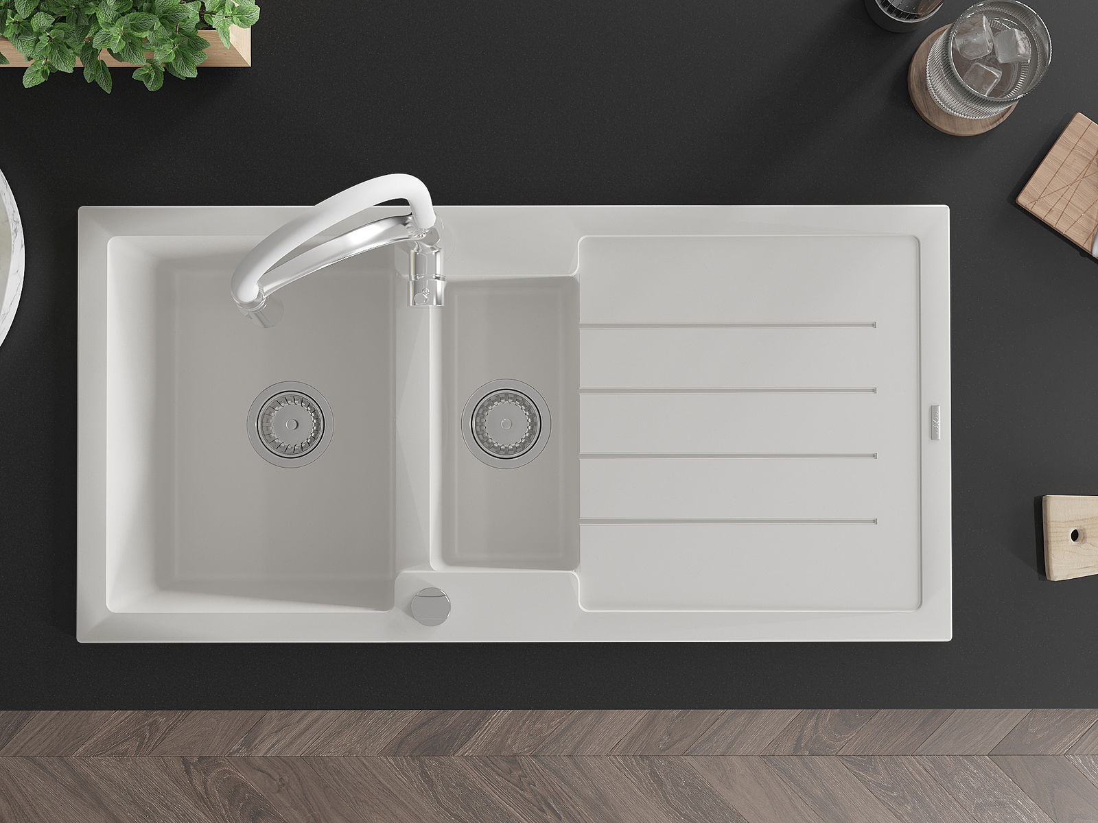 La surface de l'évier est très bien trempée et se distingue par une résistance exceptionnelle aux dommages mécaniques et aux rayures. Ce matériau durable vous permettra de profiter de son bel aspect pendant de nombreuses années.