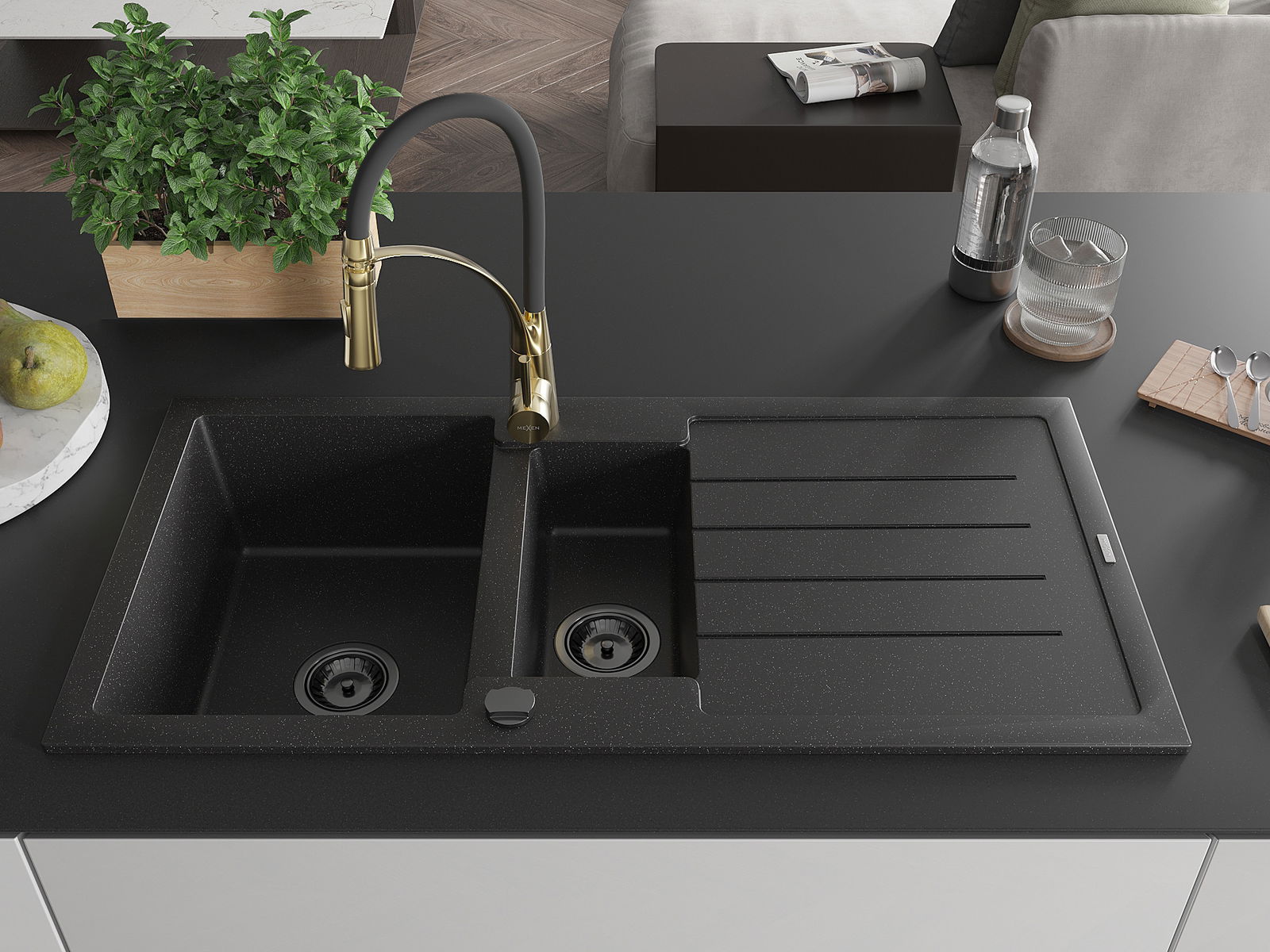 L'évier est fabriqué en granit de haute qualité. Il constitue un complément élégant et surtout pratique pour toute cuisine, quel que soit son style. La qualité et la durabilité du granit garantissent de nombreuses années d'utilisation.