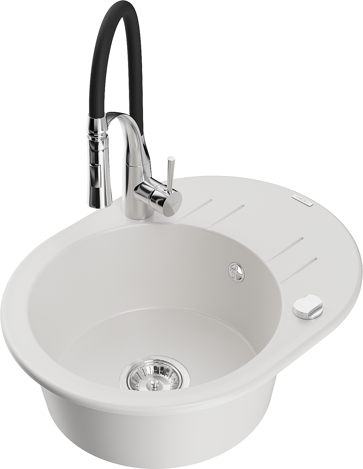 Mexen Kevin évier en granit 1 bac avec égouttoir et mitigeur de cuisine Aster, blanc - 6517-20-73450-07