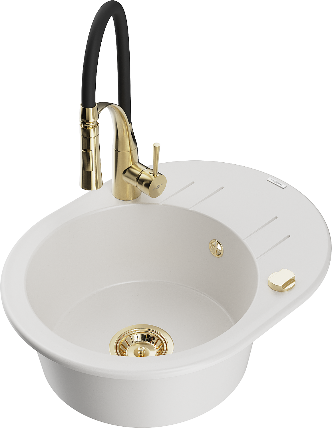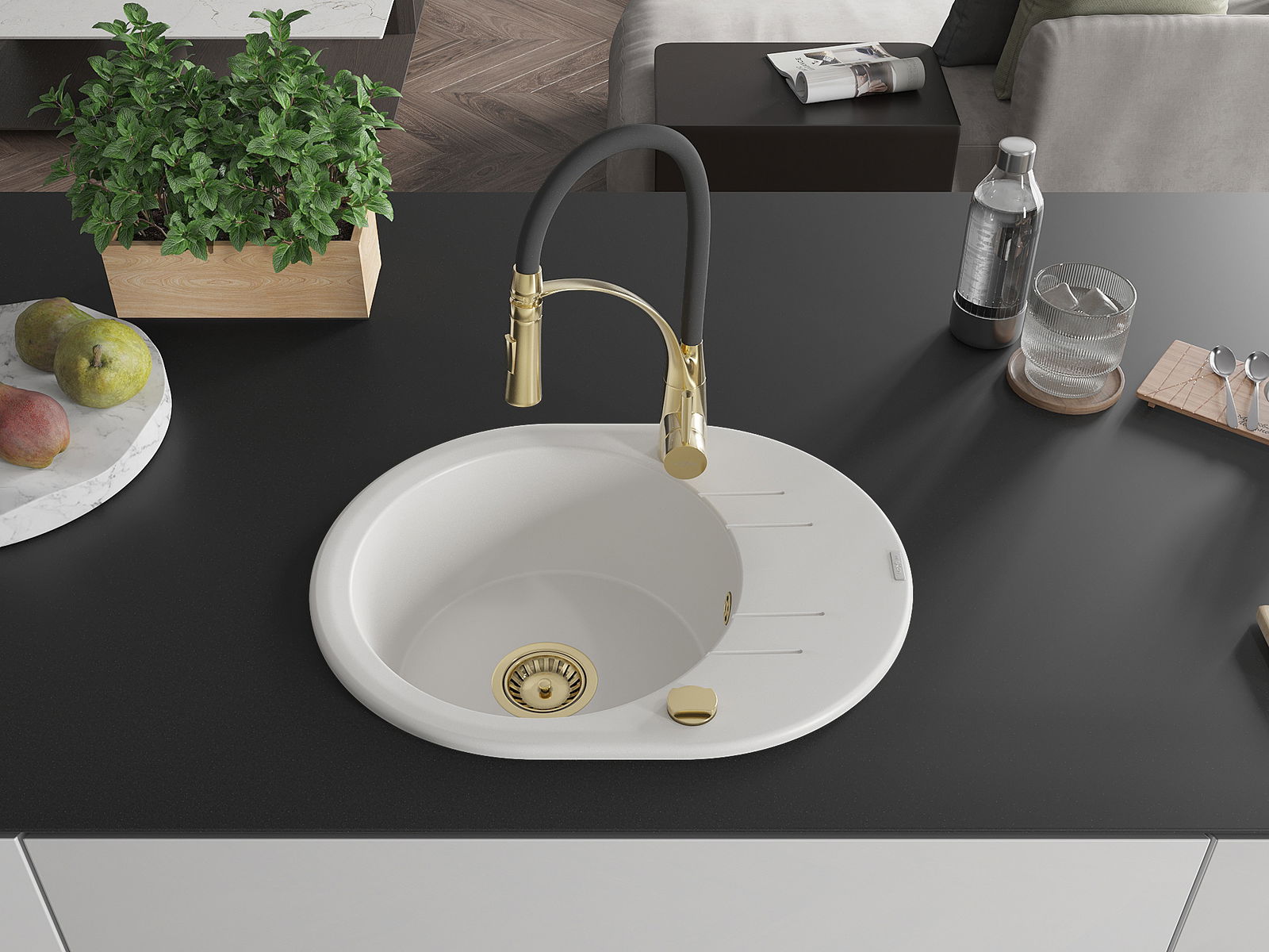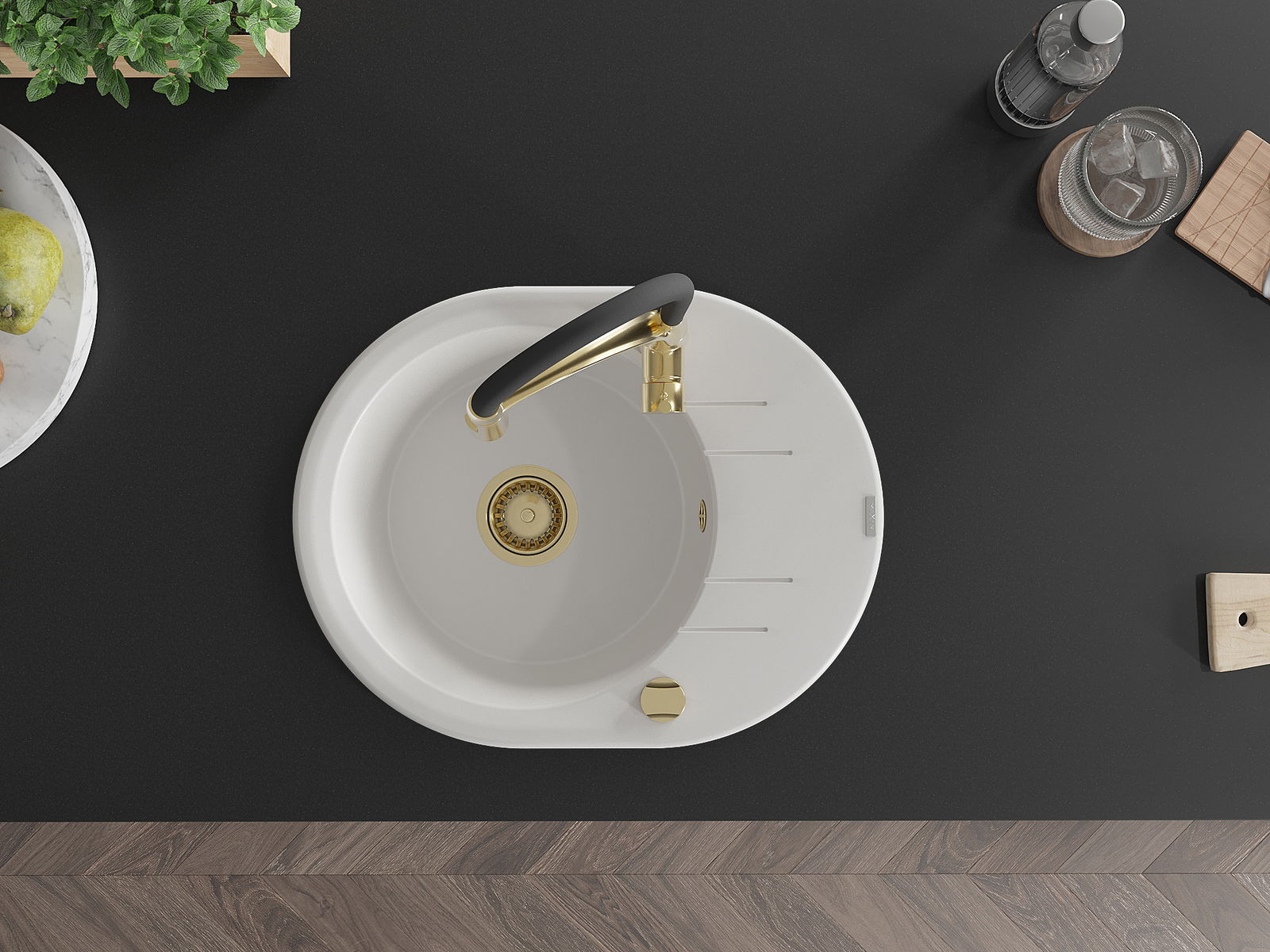 Mexen Kevin évier en granit 1 bac avec égouttoir et robinet de cuisine Aster, blanc - 6517-20-73450-57-G
