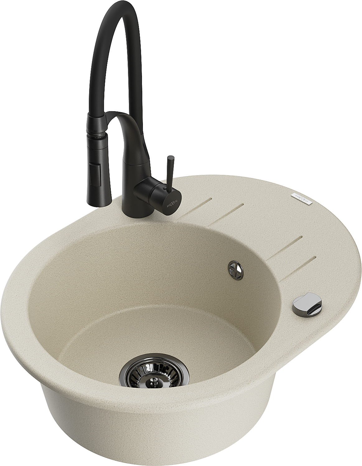 Mexen Kevin évier en granit 1 bac avec égouttoir et robinet de cuisine Aster, beige - 6517-69-73450-70-B
