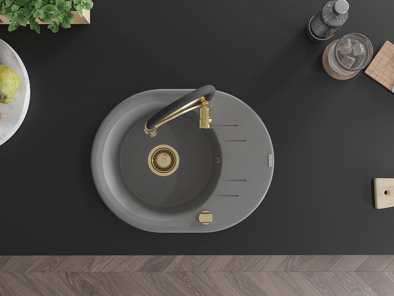 Mexen Kevin évier en granit 1 bac avec égouttoir et robinet de cuisine Aster, gris - 6517-71-73450-57-G