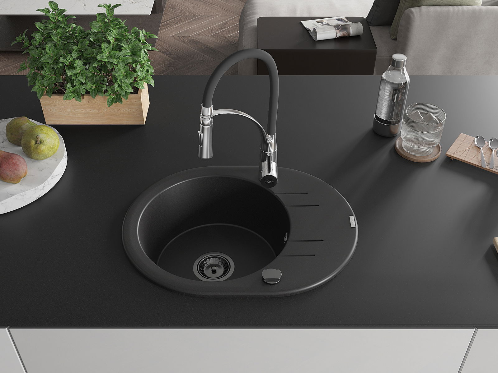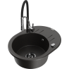 Mexen Kevin évier en granit 1 bac avec égouttoir et robinet de cuisine Aster, noir - 6517-77-73450-07-B