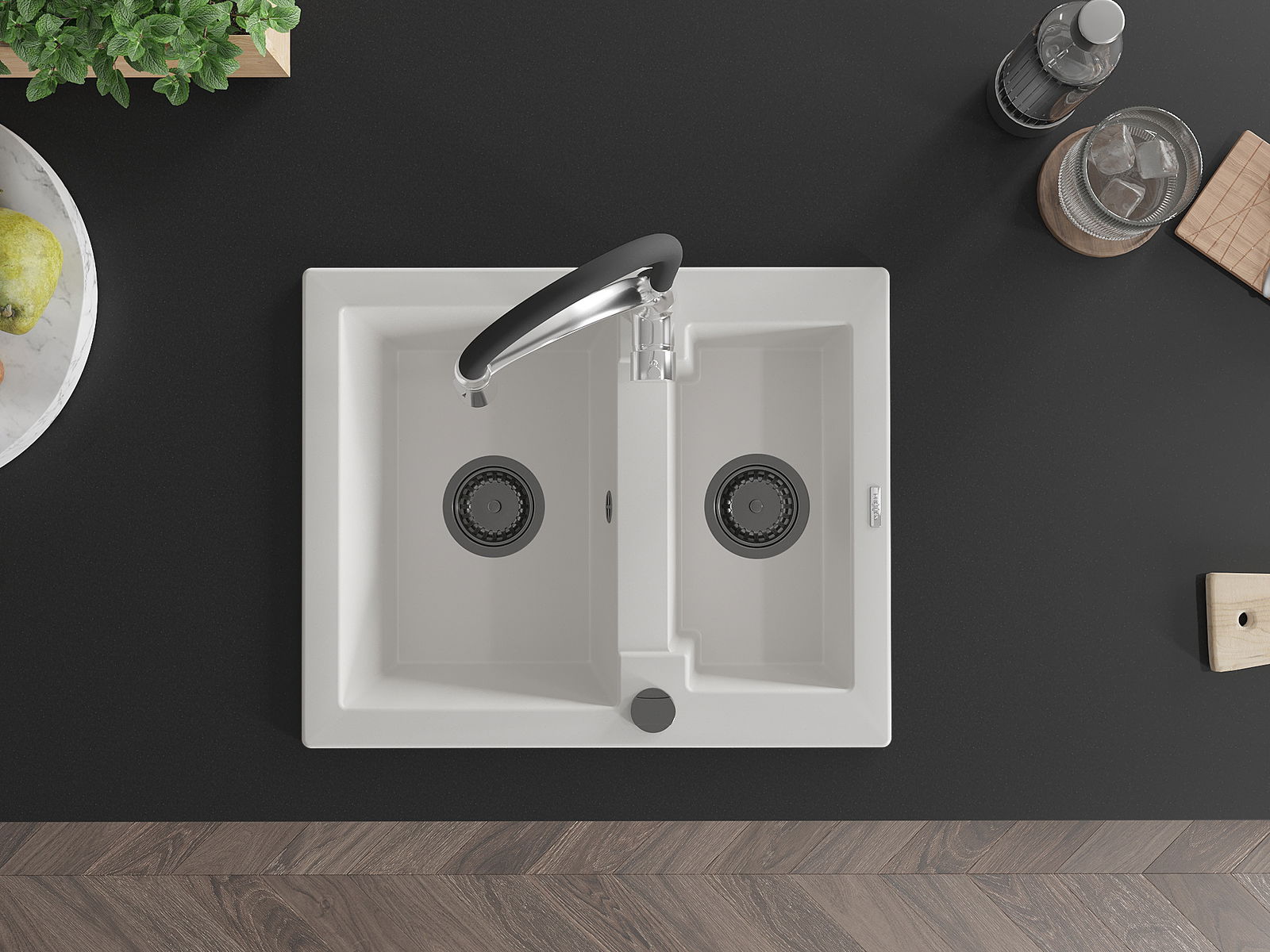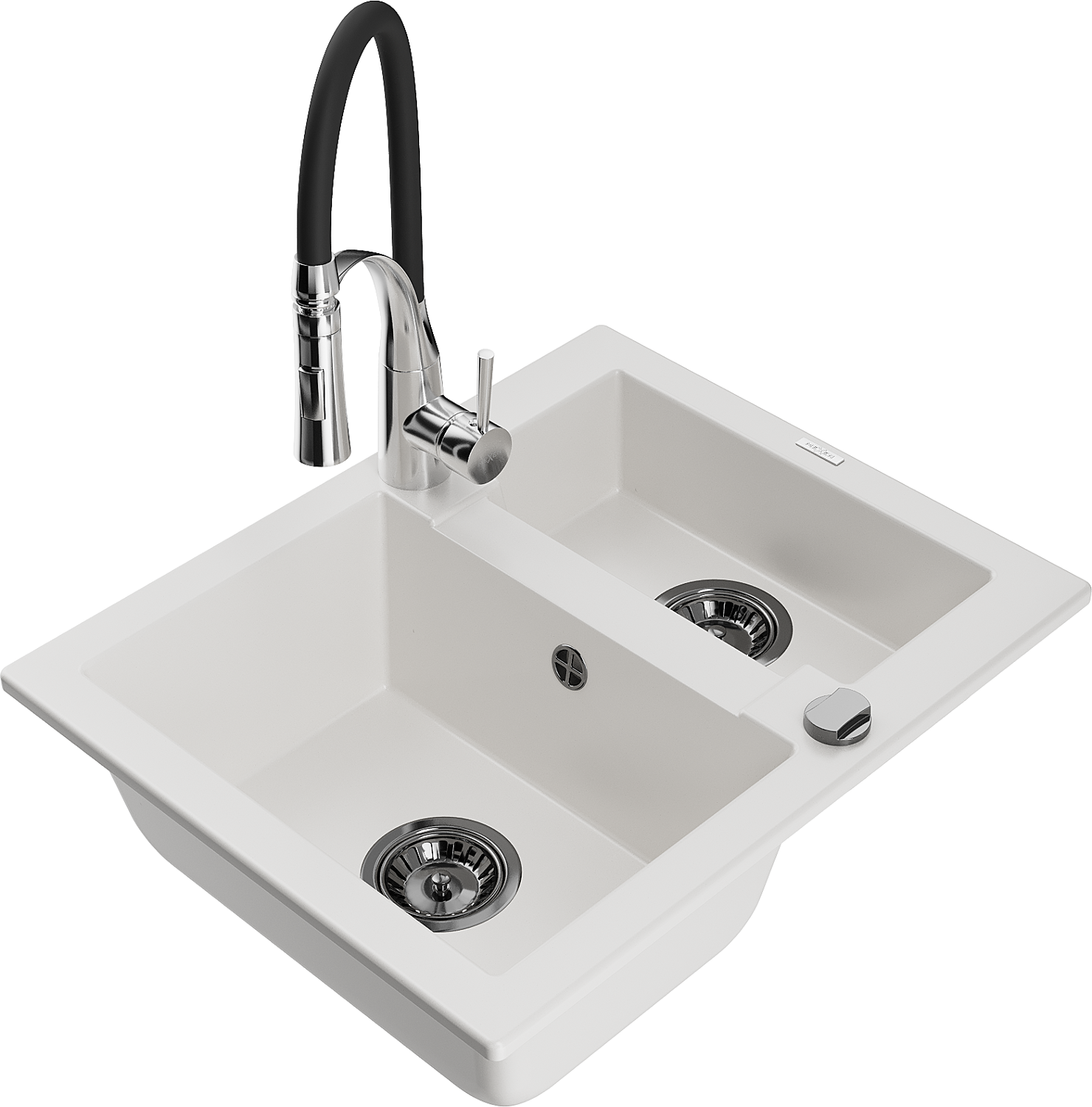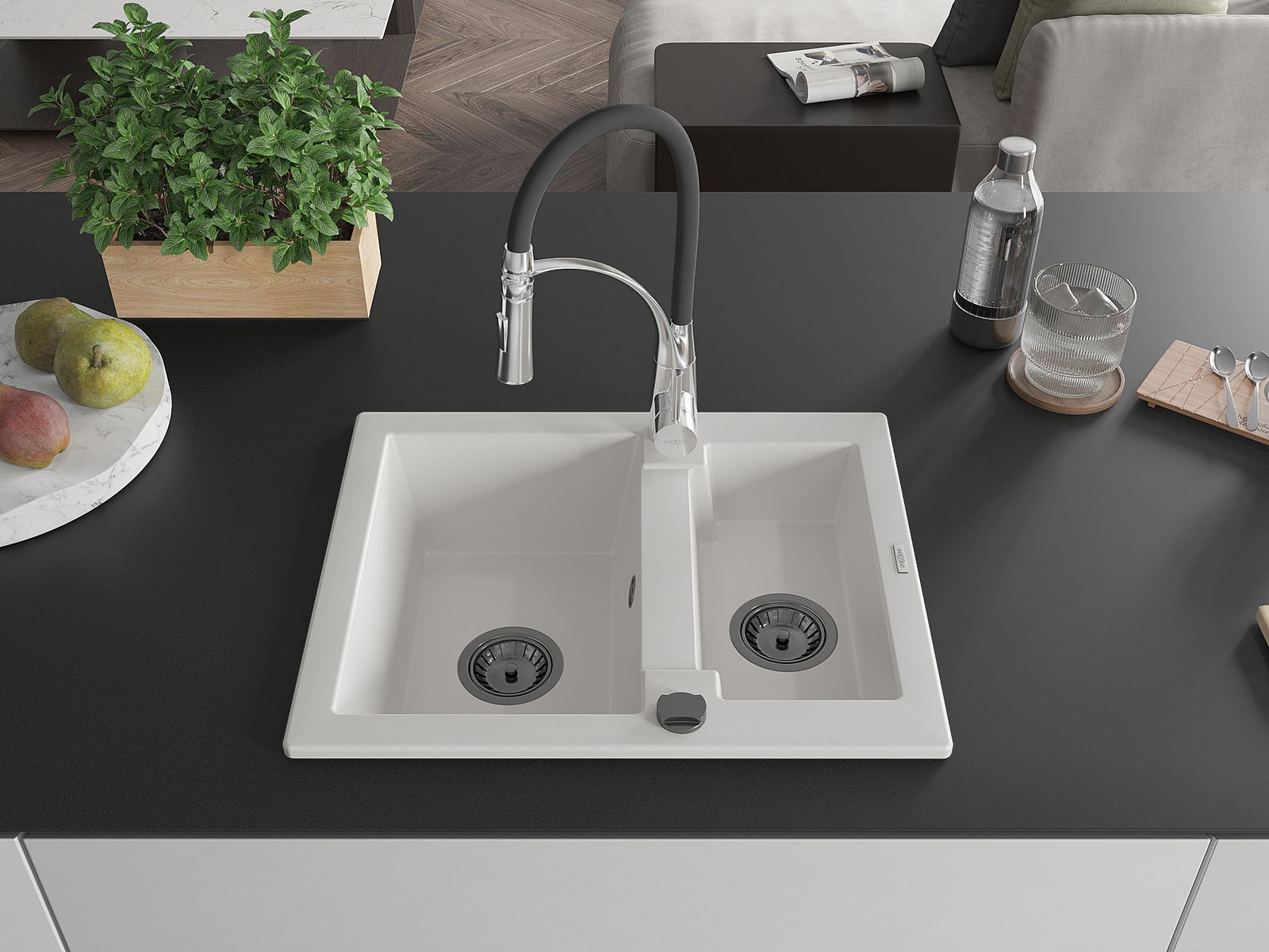 Mexen Carlos évier en granit 1,5 bac avec mitigeur de cuisine Aster, blanc - 6518-20-73450-07-B