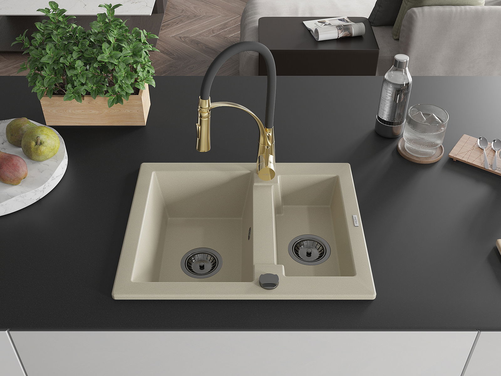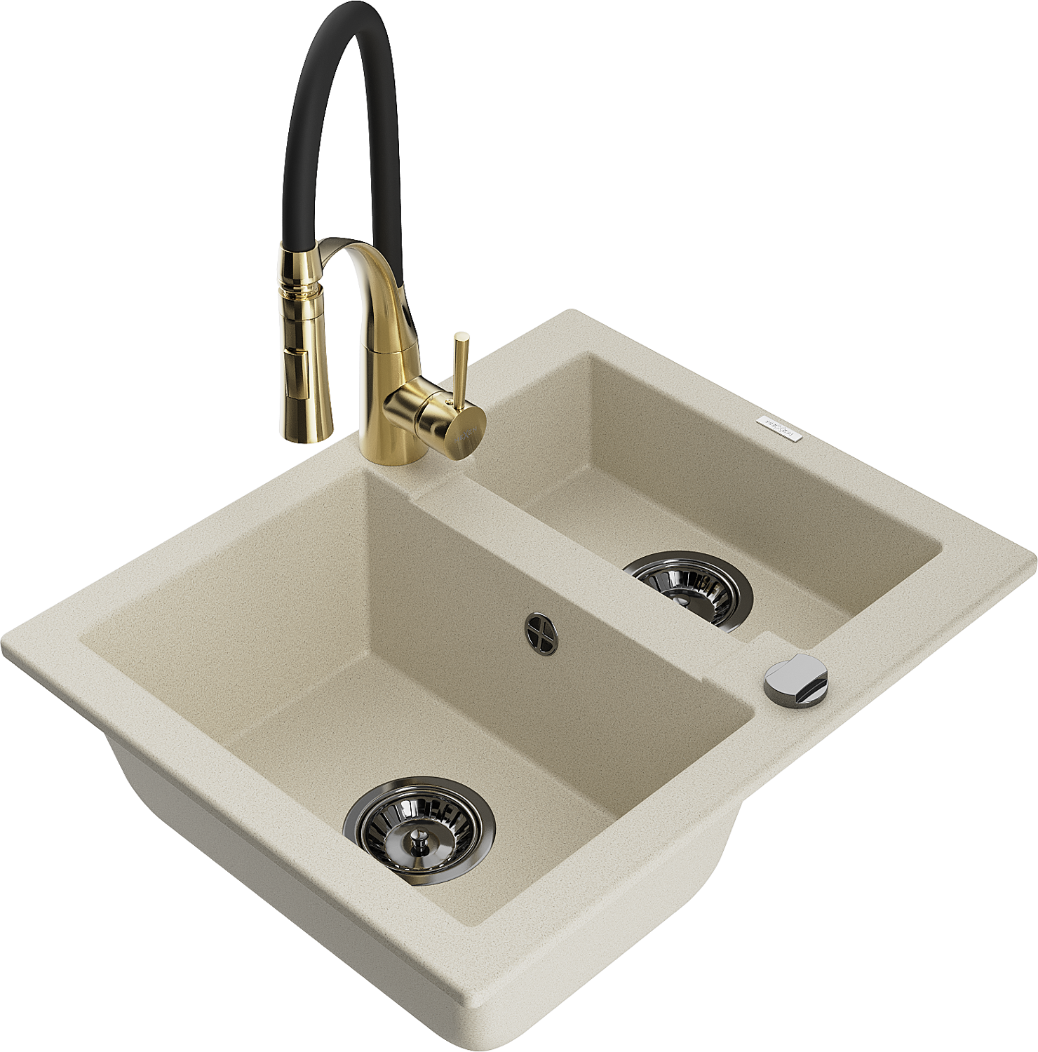 Mexen Carlos évier en granit 1,5 bac avec robinet de cuisine Aster, beige - 6518-69-73450-57-B