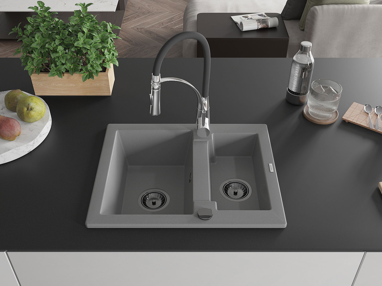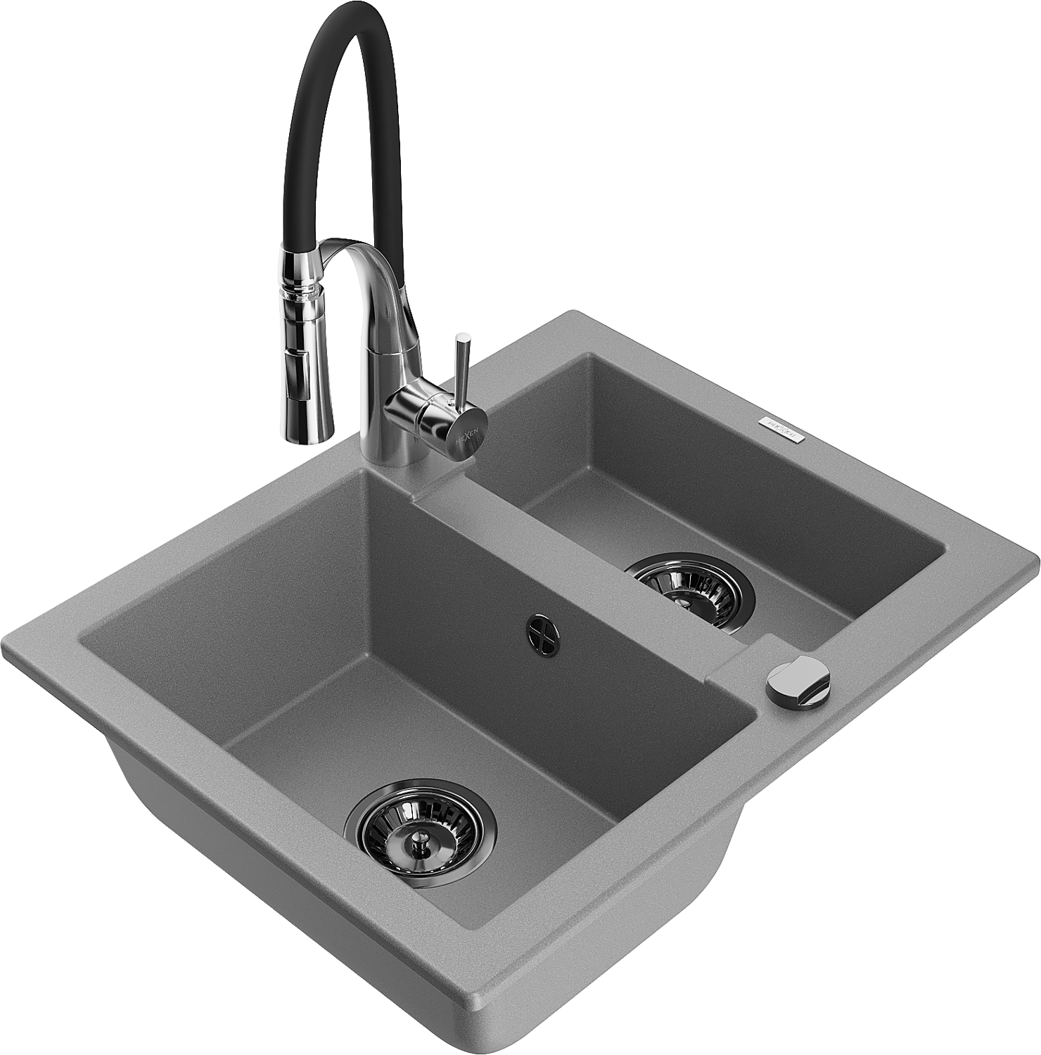 Mexen Carlos évier en granit 1,5 bac avec robinet de cuisine Aster, gris - 6518-71-73450-07-B