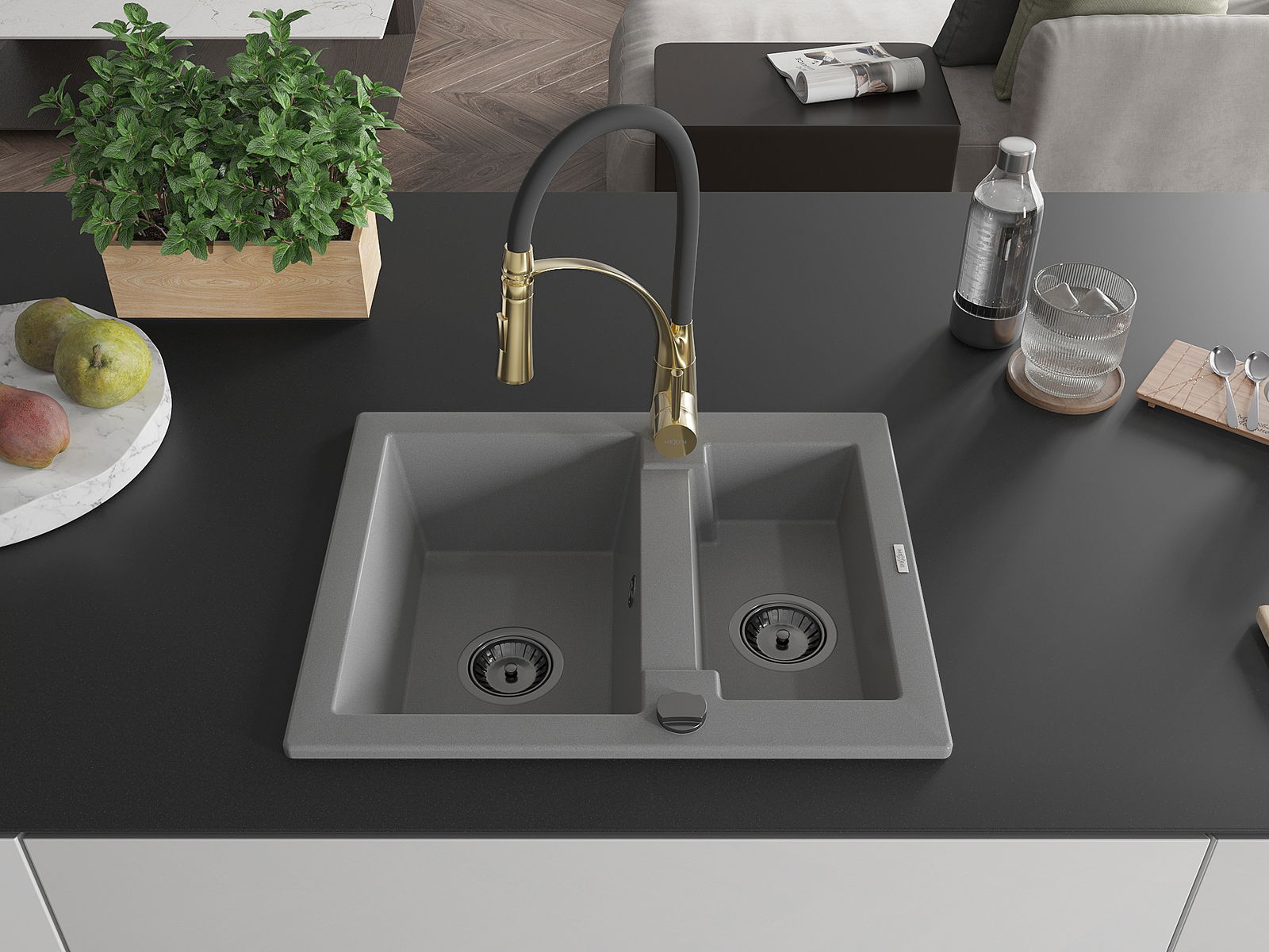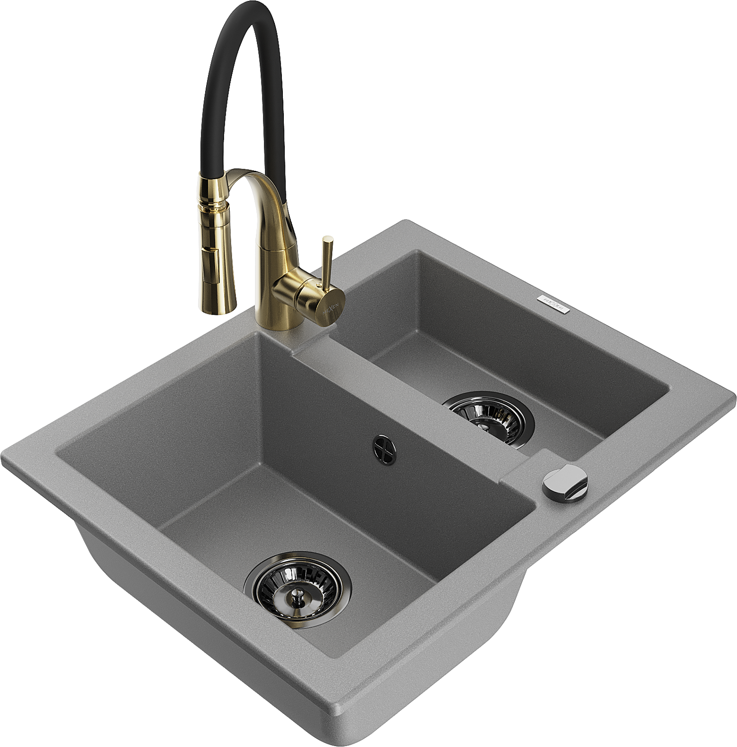 Mexen Carlos évier en granit 1,5 bac avec robinet de cuisine Aster, gris - 6518-71-73450-57-B