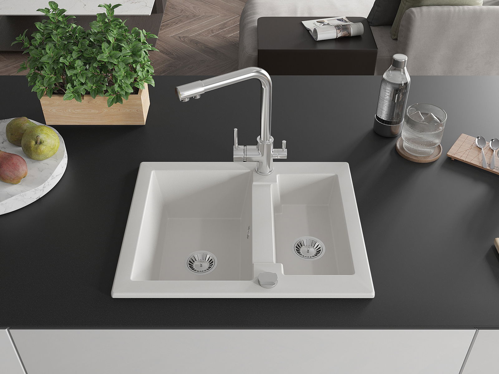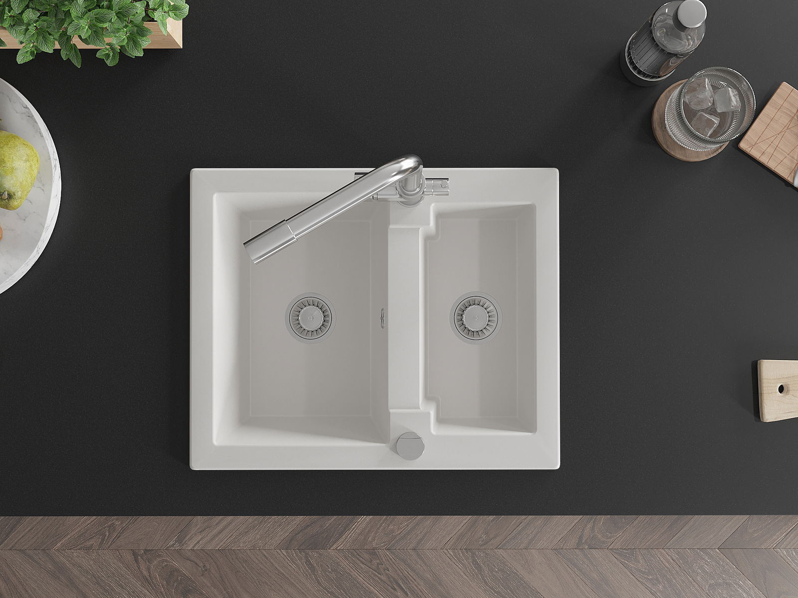 La surface de l'évier est très bien trempée et se distingue par une résistance exceptionnelle aux dommages mécaniques et aux rayures. Ce matériau durable vous permettra de profiter de son bel aspect pendant de nombreuses années.