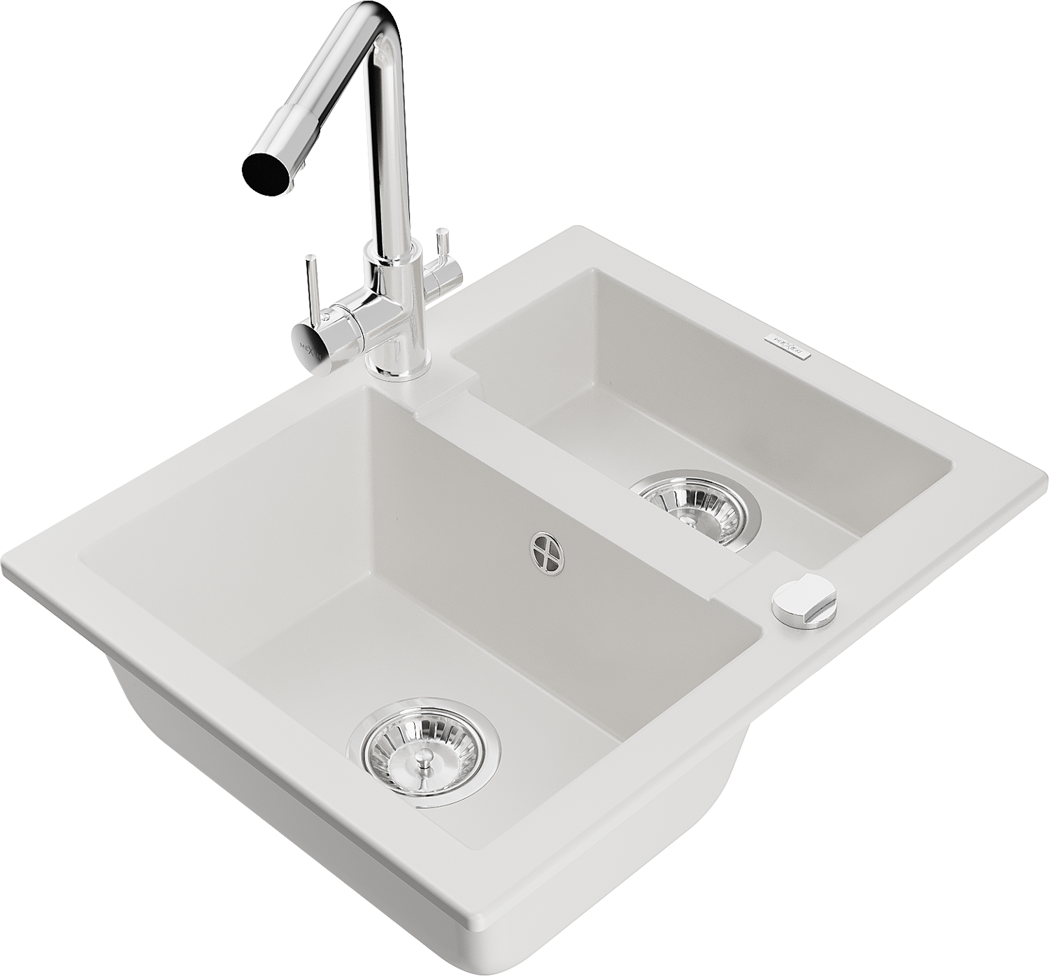 Mexen Carlos évier en granit 1,5 bassin avec robinet de cuisine Duero, blanc - 6518-20-671600-00