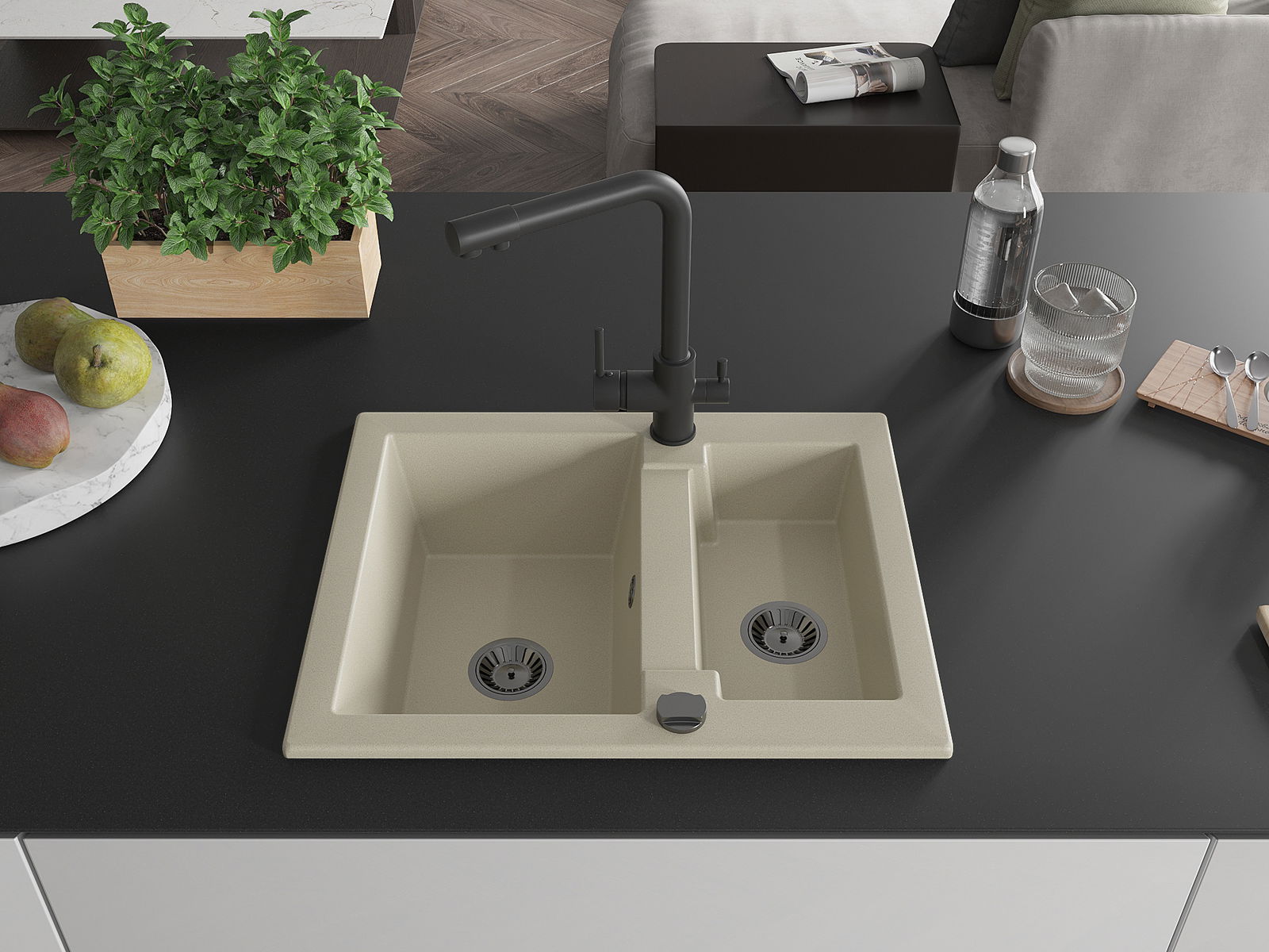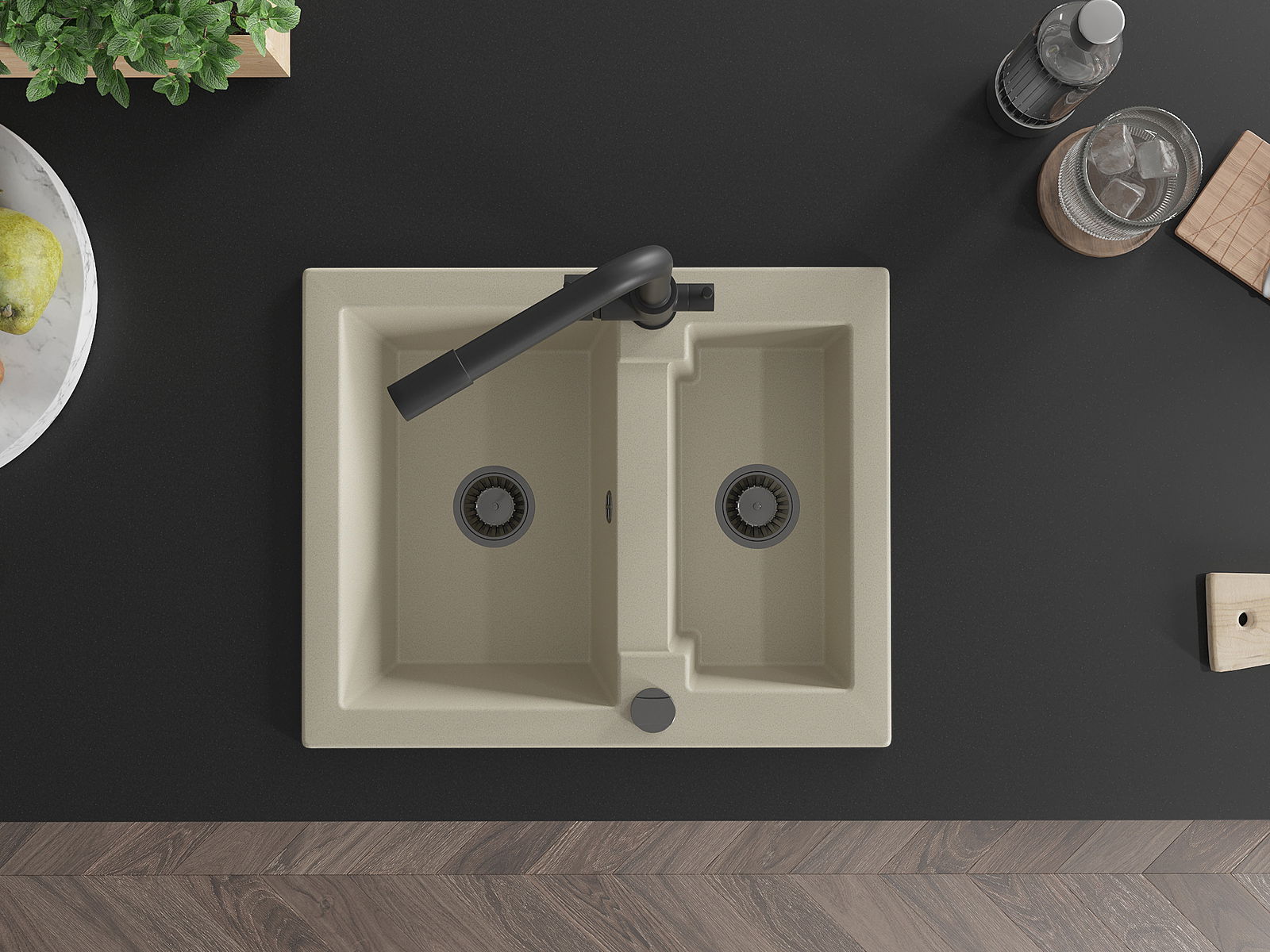L'évier a été fabriqué en granit de haute qualité. Il constitue un complément élégant et surtout pratique pour chaque cuisine, quel que soit son style. La haute qualité et la durabilité du granit garantissent une utilisation de plusieurs années.