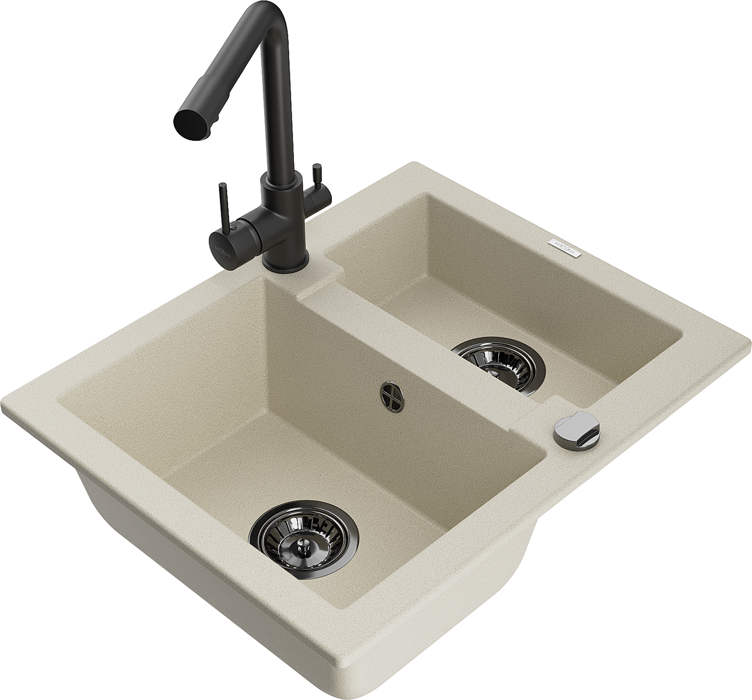 Mexen Carlos évier en granit 1,5 bac avec robinet de cuisine Duero, beige - 6518-69-671600-70