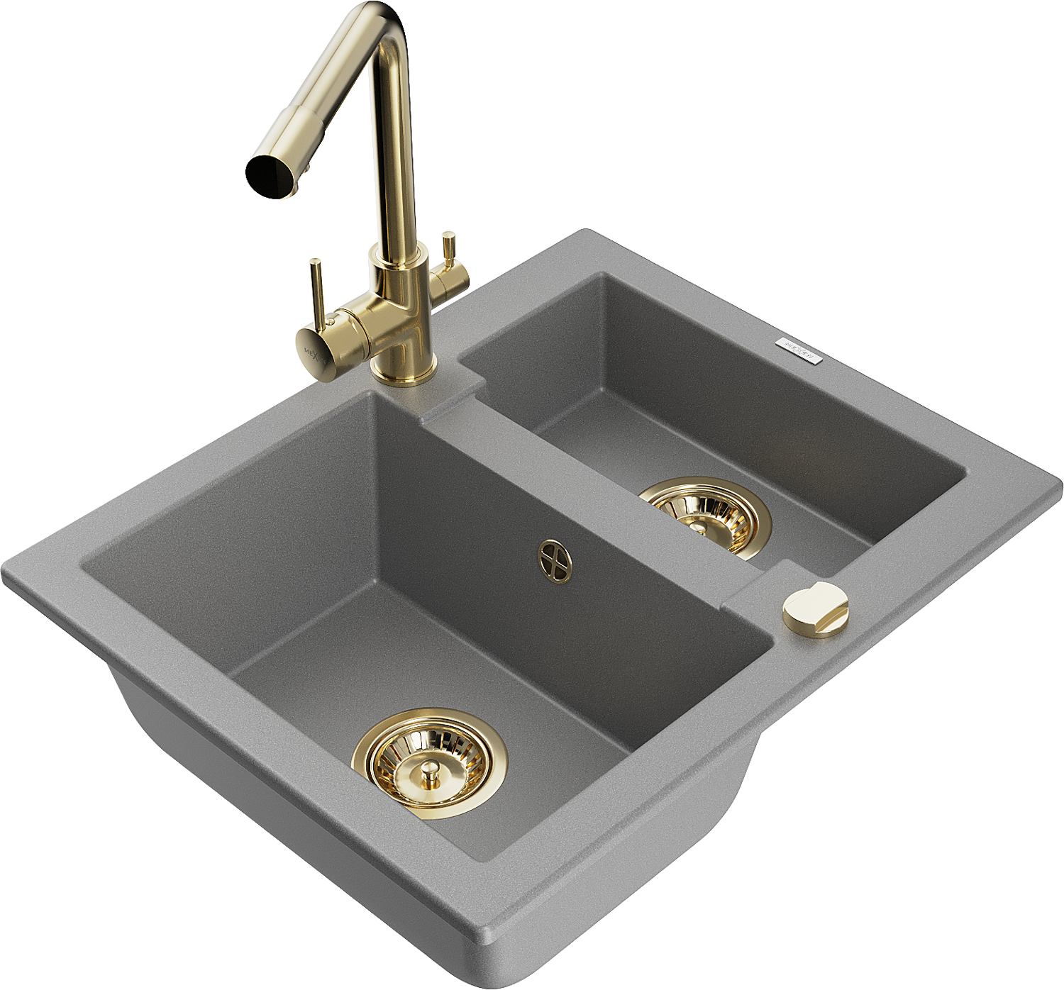 Mexen Carlos évier en granit 1,5 bac avec mitigeur cuisine Duero, gris - 6518-71-671600-50