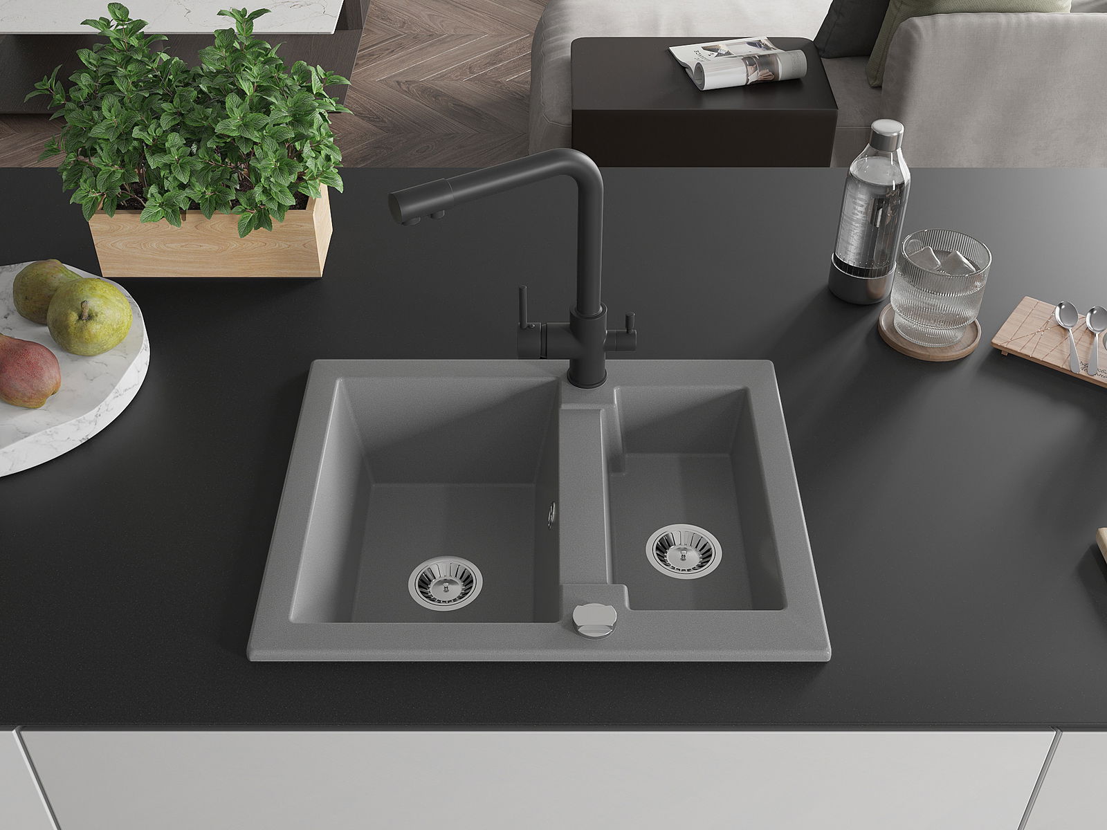 L'évier est fabriqué en granit de haute qualité. Il constitue un complément élégant et surtout pratique pour toute cuisine, quel que soit son style. La qualité et la durabilité du granit garantissent de nombreuses années d'utilisation.