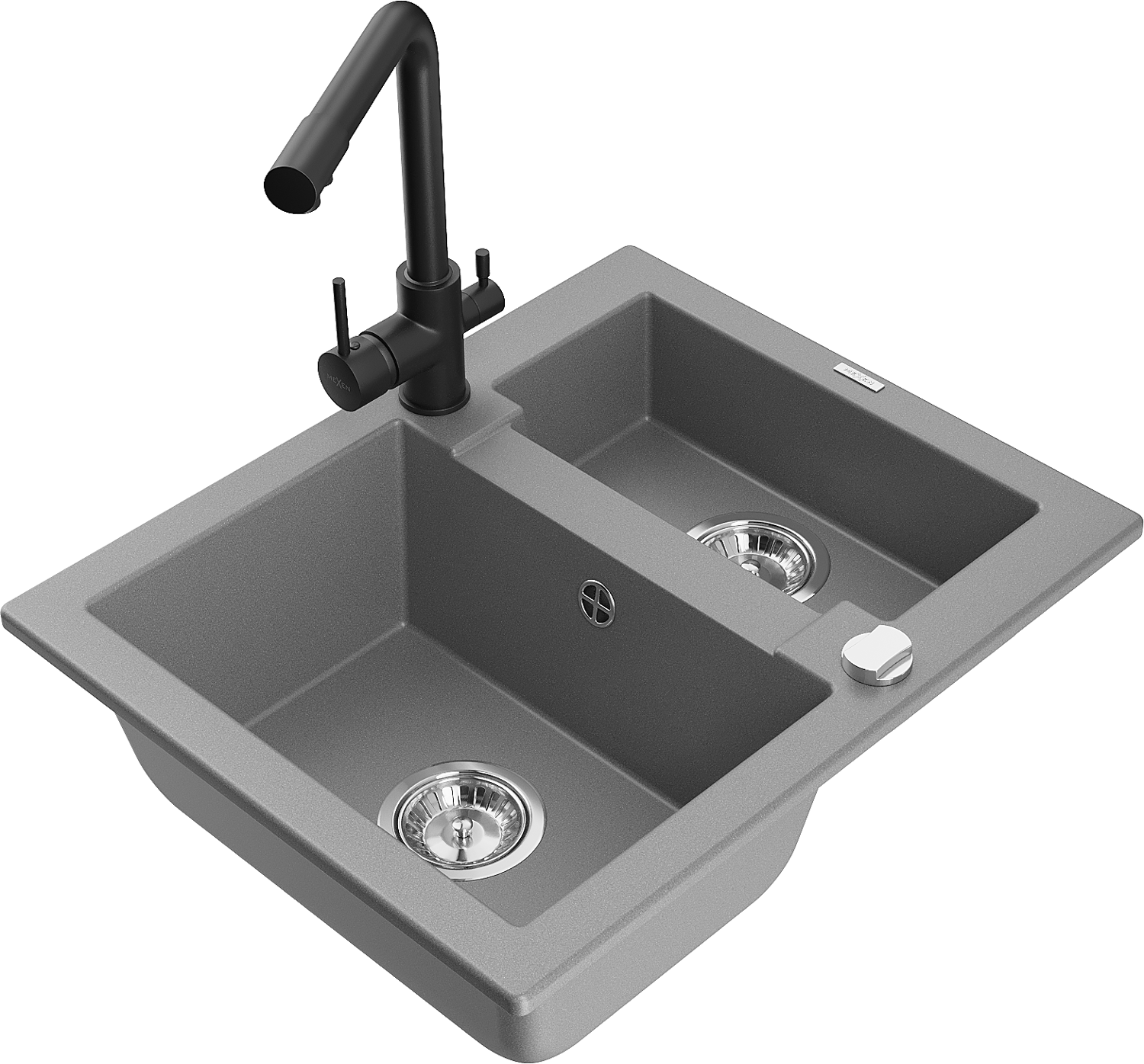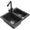Mexen Carlos évier en granit 1,5 bac avec robinet de cuisine Duero, gris - 6518-71-671600-70