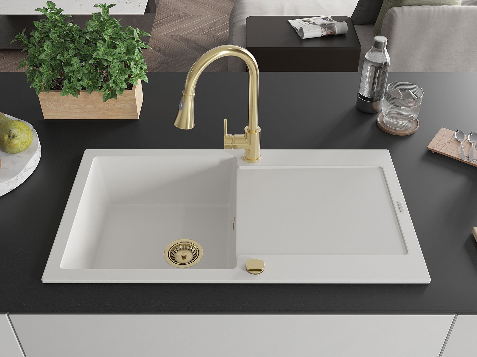 L'évier est fabriqué en granit de haute qualité. Il constitue un complément élégant et surtout pratique pour toute cuisine, quel que soit son style. La qualité et la durabilité du granit garantissent de nombreuses années d'utilisation.