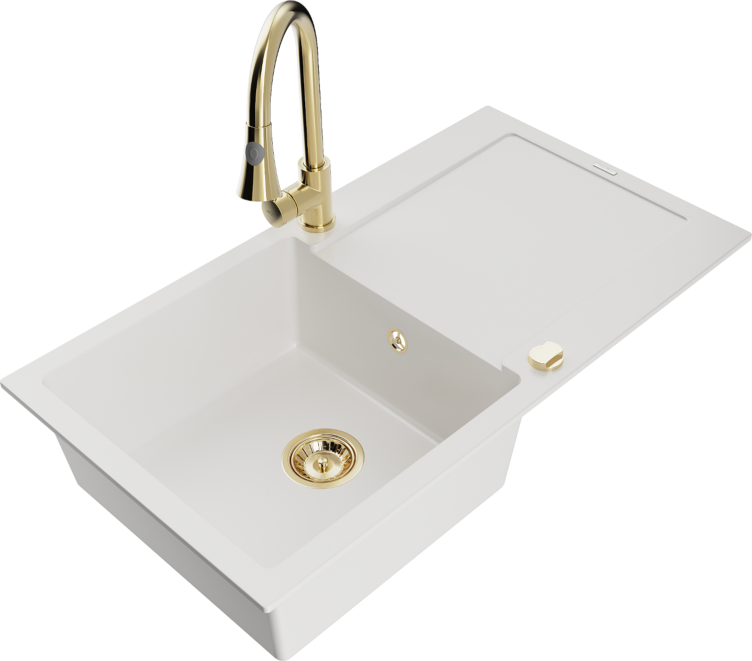 Mexen Leo évier en granit à 1 bac avec égouttoir et robinet de cuisine Elia, blanc - 6501-20-670101-50