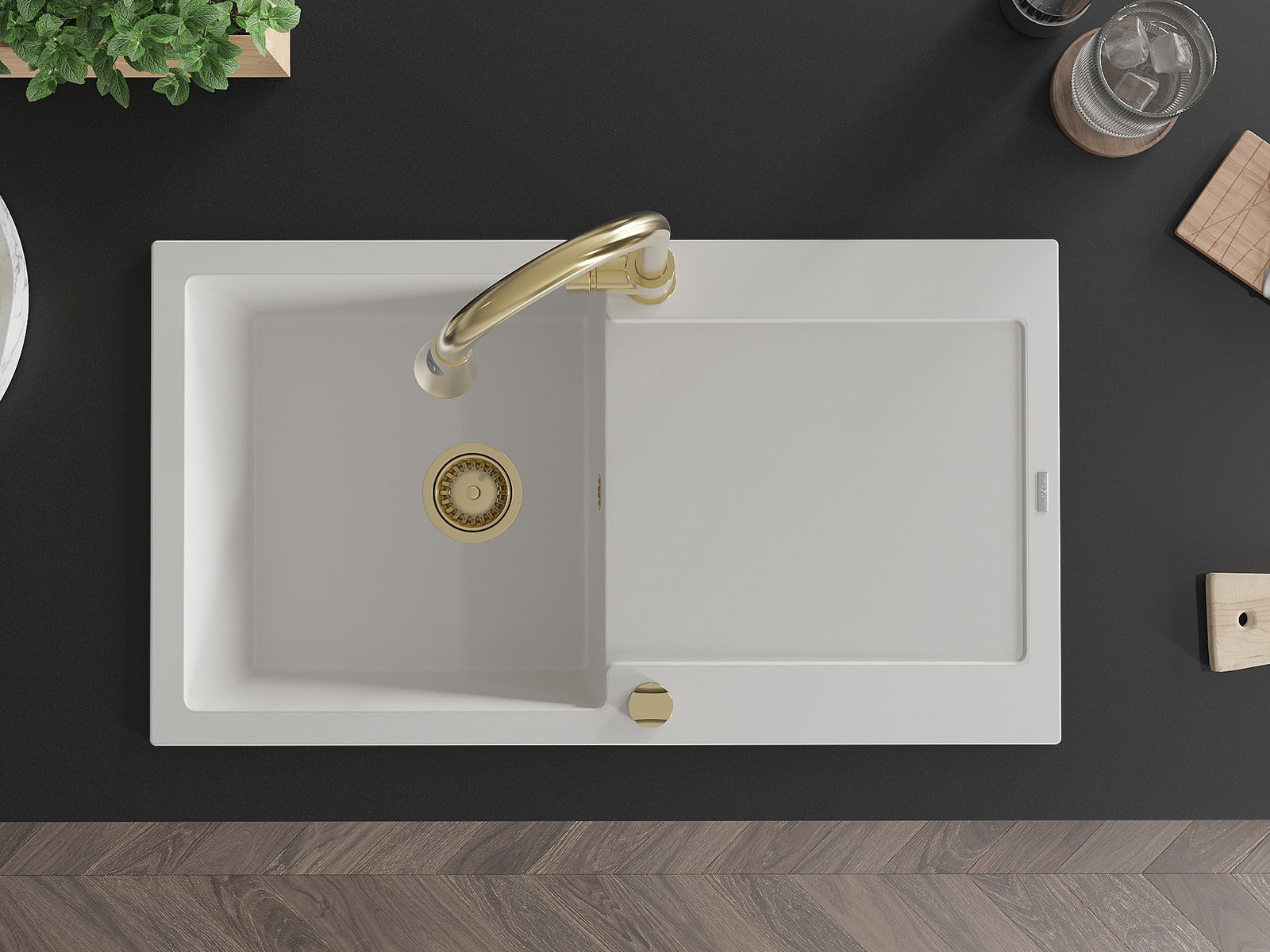 La surface de l'évier est très bien trempée et se distingue par une résistance exceptionnelle aux dommages mécaniques et aux rayures. Ce matériau durable vous permettra de profiter de son bel aspect pendant de nombreuses années.