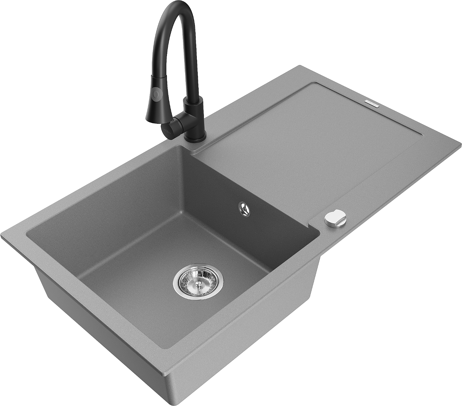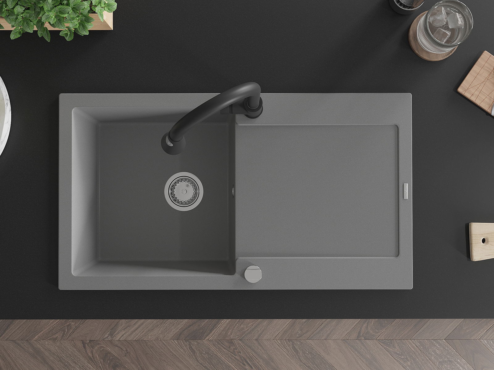 Mexen Leo évier en granit à 1 bac avec égouttoir et mitigeur de cuisine Elia, gris - 6501-71-670101-70